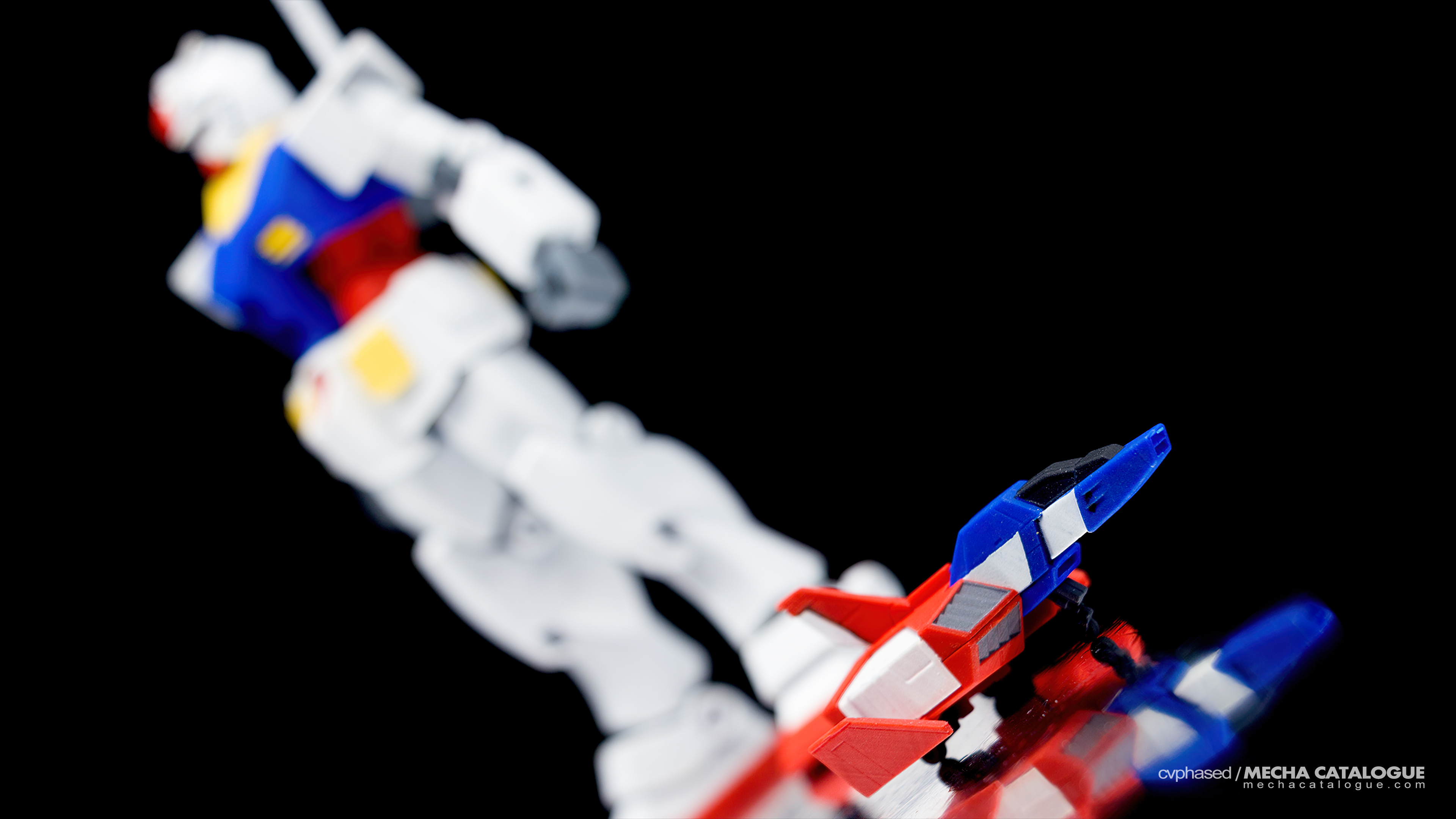 The RX-78-2 Gundam doesn’t have a complicated color scheme, making this kit quite color accurate outside the box except for a couple of parts. Marking seals are only provided for the eyes and head cameras. It’s also the first kit to provide clear beam saber effect parts, the lack of which is a common issue with earlier releases. Another good comparison with earlier HGUC kits is the better articulation provided by the forward moving shoulder assemblies (in contrast to a simple peg) and a sideways pivot on the hip joint. The elbows and knees are all single hinges but you can still get decent poses with this kit. Most of the Gundam’s accessories come with the kit, like the hyper bazooka and the aforementioned beam saber effect part. It also comes with non-transforming Core Fighter and it only comes in red and blue plastic. This version of the RX-78-2 Gundam is a good kit though it was eventually replaced by a couple of better High Grades — the G30th version in 2009, and ultimately the HGUC “Revive” in 2015.