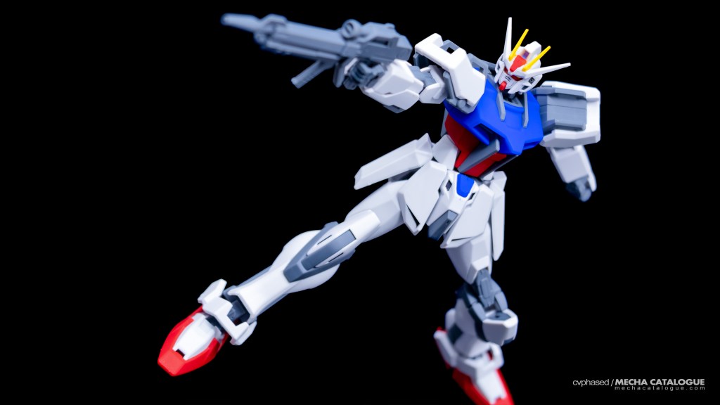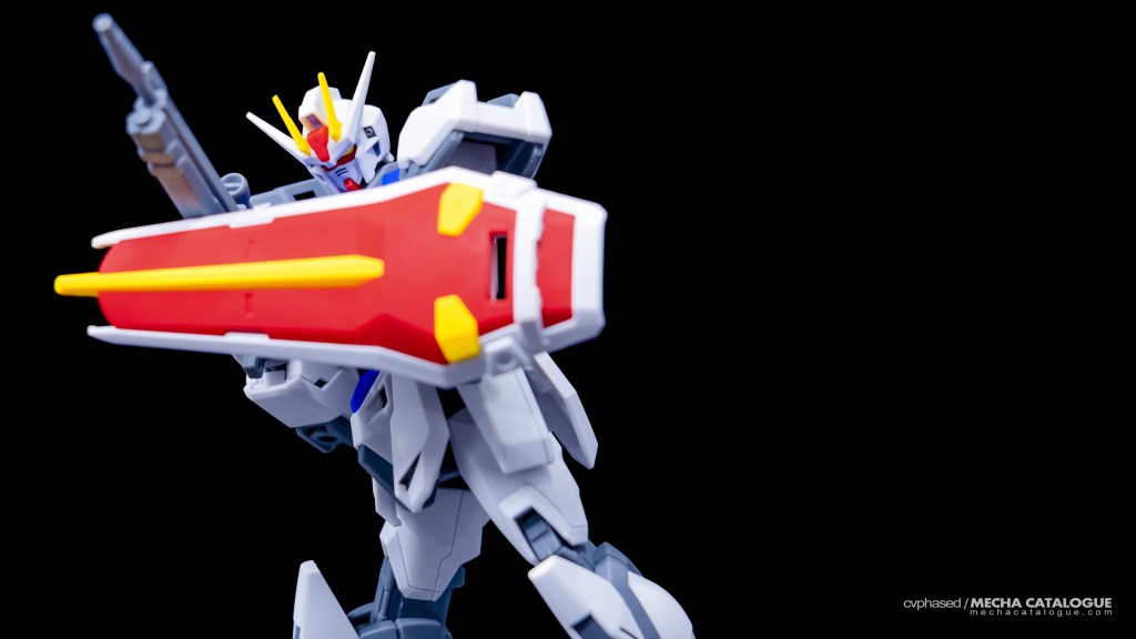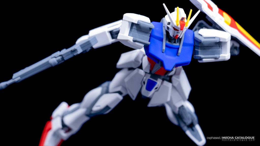 Taking advantage of clever parts layering, the kit requires minimal painting to look great outside the box. This is especially true with the head unit with the exposed internals and vents already in gray. While surface details are on the lighter side, which are comparable with the HGCE version, panel lining them are still recommended. Articulation is also good with the use of ball joints and C-clips hinge joints like the 30 Minute Missions line. Unfortunately, there have been multiple reports of these hinge joints getting loose over time, which has also affected my kit, particularly in the elbows. Being the standard packaged version, the kit includes both the beam rifle and shield for accessories. You can also use the Striker Packs from any of the HGCE kits as they are compatible as well.