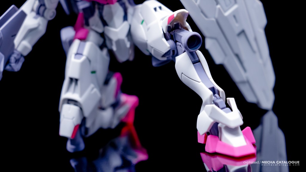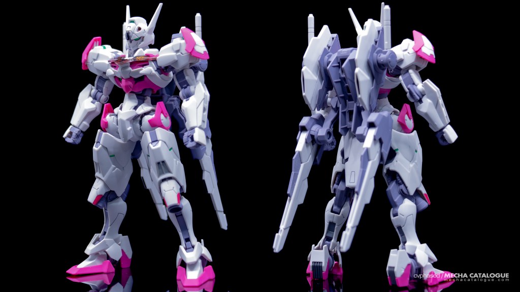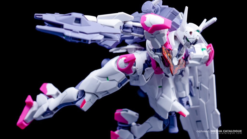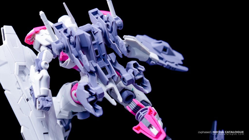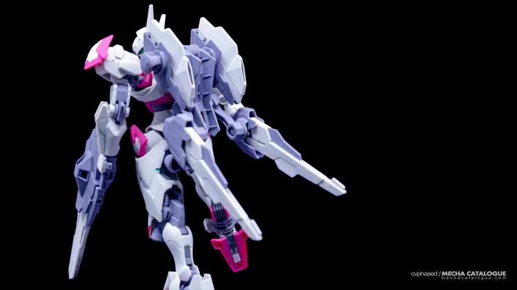 Primarily, HG Gundam Lfrith captures all the nuances of the original design. From the rather feminine proportions to the color separation in key areas, to the great articulation. These are positive talking points that builders have praised and hoped to see more in the line. They also introduced new in-line molded parts for the GUND-ARM shell units, where the intricate color patterns are molded in as the name implies, like a sticker sandwiched between plastic parts. These don’t eliminate the use of color correcting stickers though, as with most High Grades. And for the other shell units, ‘reversed stickers’ are used where the colors are applied to the adhesive side and placed on the underside of clear parts. Articulation is also excellent, not only because of the unimpeded design, but with the choice to forego any polycaps in the joints. They also introduced the use of C-clip joints which is common with 30 Minute Missions kits and while they’re good on the get go, they do have tendencies to get loose eventually and are quite hard to repair once broken. Gundam Lfrith comes with several accessories, the most notable being the Compo GUND-BIT Shield which is basically all the bits combined to form the shield. Each GUND-BIT can function as a separate accessory though parts to display them deployed are sold separately. They can also combine with Gundam Lfrith itself for its Bit-On form, or to the Receiver Gun to form the GUND-BIT Rifle. It also has a couple of effect parts for the Beam Sabers and the Beam Blade, the latter for use with the Receiver Gun.