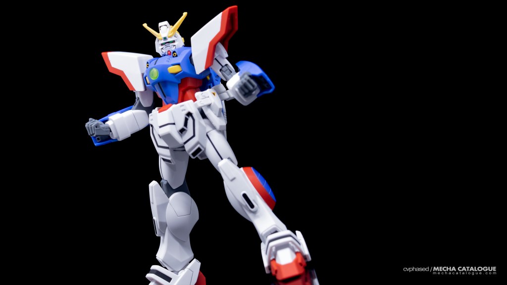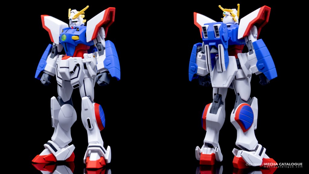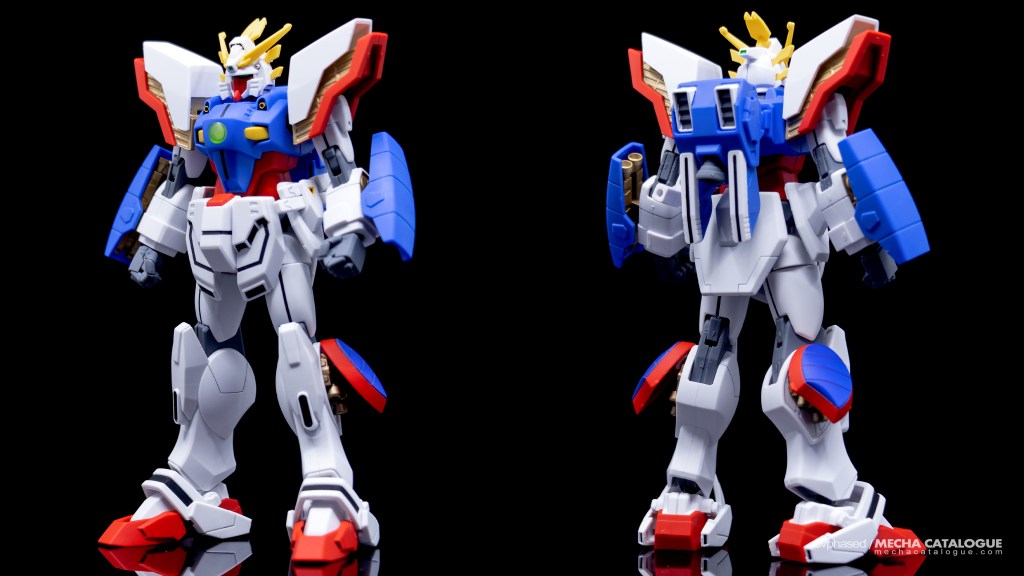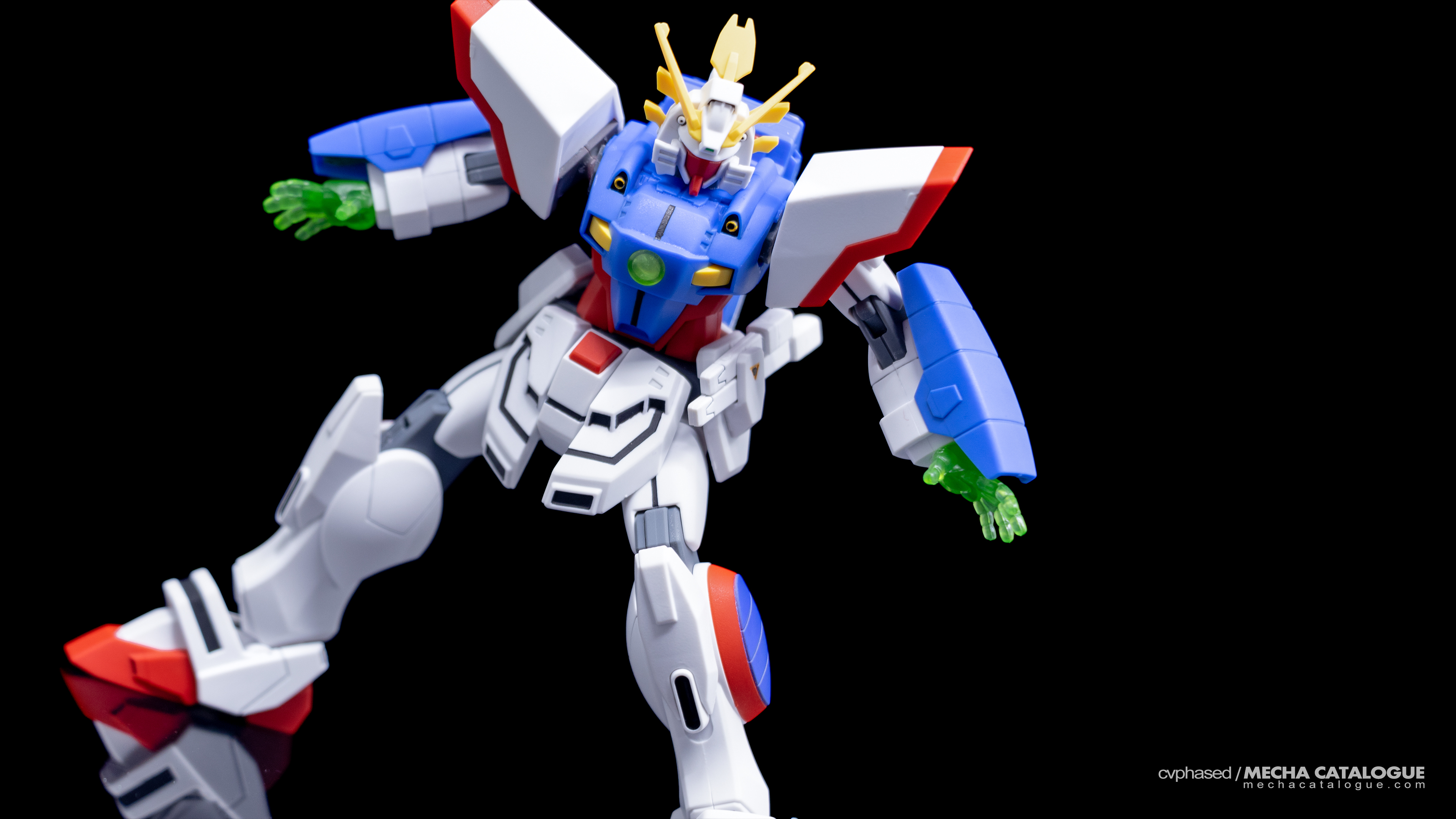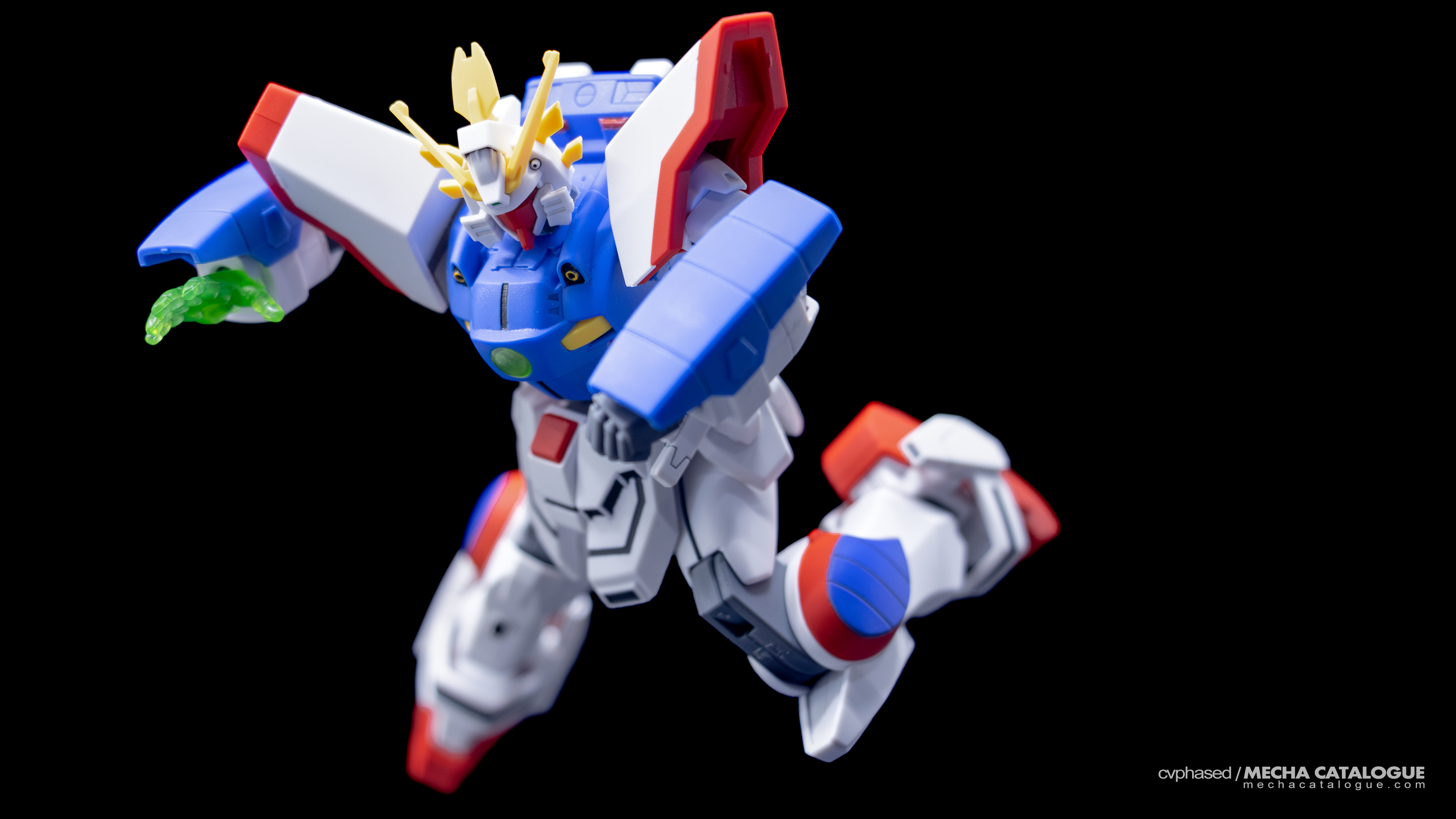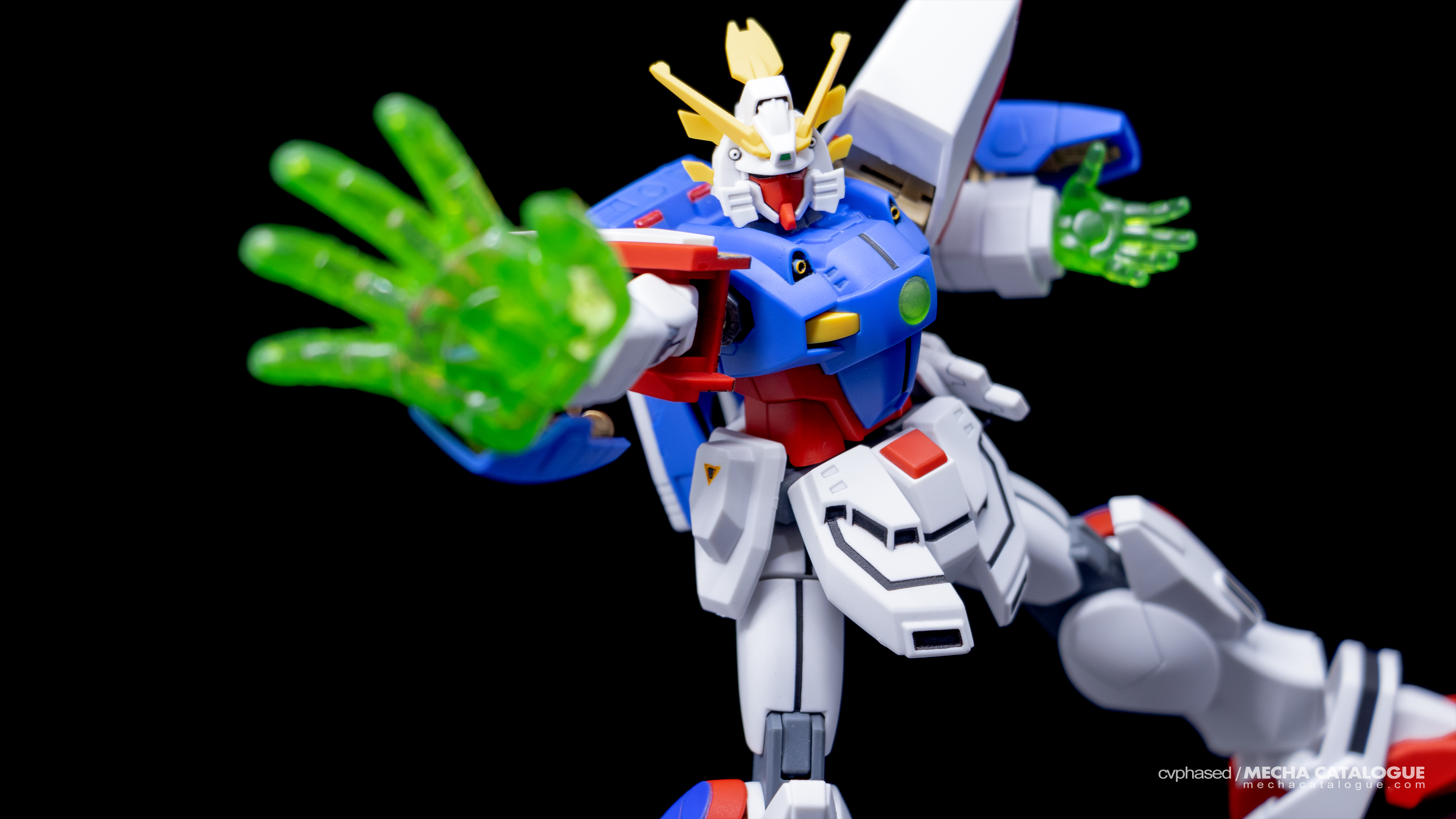 For starters, no. The proportions on this kit are really good, but you need to paint several parts for color accuracy. Chief among these are the side panels on the legs, but more importantly, all gold mechanical parts that are exposed when displaying the kit in Super Mode. Yes, the kit does transform, though I just built two copies, with one permanently in Super Mode, instead of going through the quick transformation. Articulation is okay, but it’s lacking for something that’s supposed to be very agile. I’d imagine a Real Grade version would address this. The kit does compensate with several accessories and effect parts. These include replacement manipulators, with a pair for the Shining Finger attack and a large Shining Finger you place over the left standard Shining Finger hand. There are also a couple of standard beam saber effect parts, and one for the Shining Finger Sword attack. All Shining Finger-related effect parts are molded in translucent green. Lastly, the Core Lander is detachable, and arguably needs the most paint for color accuracy.