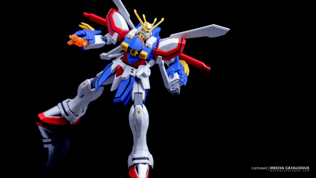 The short answer would be no, but that’s not saying the kit is a disappointment. In fact, I would assume the focus was making sure all the essential features and gimmicks are covered. For starters, you can easily recreate the God Finger attack by shifting the forearm armor and using the included replacement hand parts. The chest also opens to reveal the Energy Multiplier though you will need to paint it for color accuracy. Hidden thrusters in the legs can be also revealed by opening the rear armor and of course, the wings on the Core Lander can open to complete the God Gundam’s iconic look. Unfortunately, this is where the kit has its worst fault as the center red wings are molded hollow. Extra red strips were included on the sticker sheet to cover them, but I will recommend filling them in and painting afterwards.