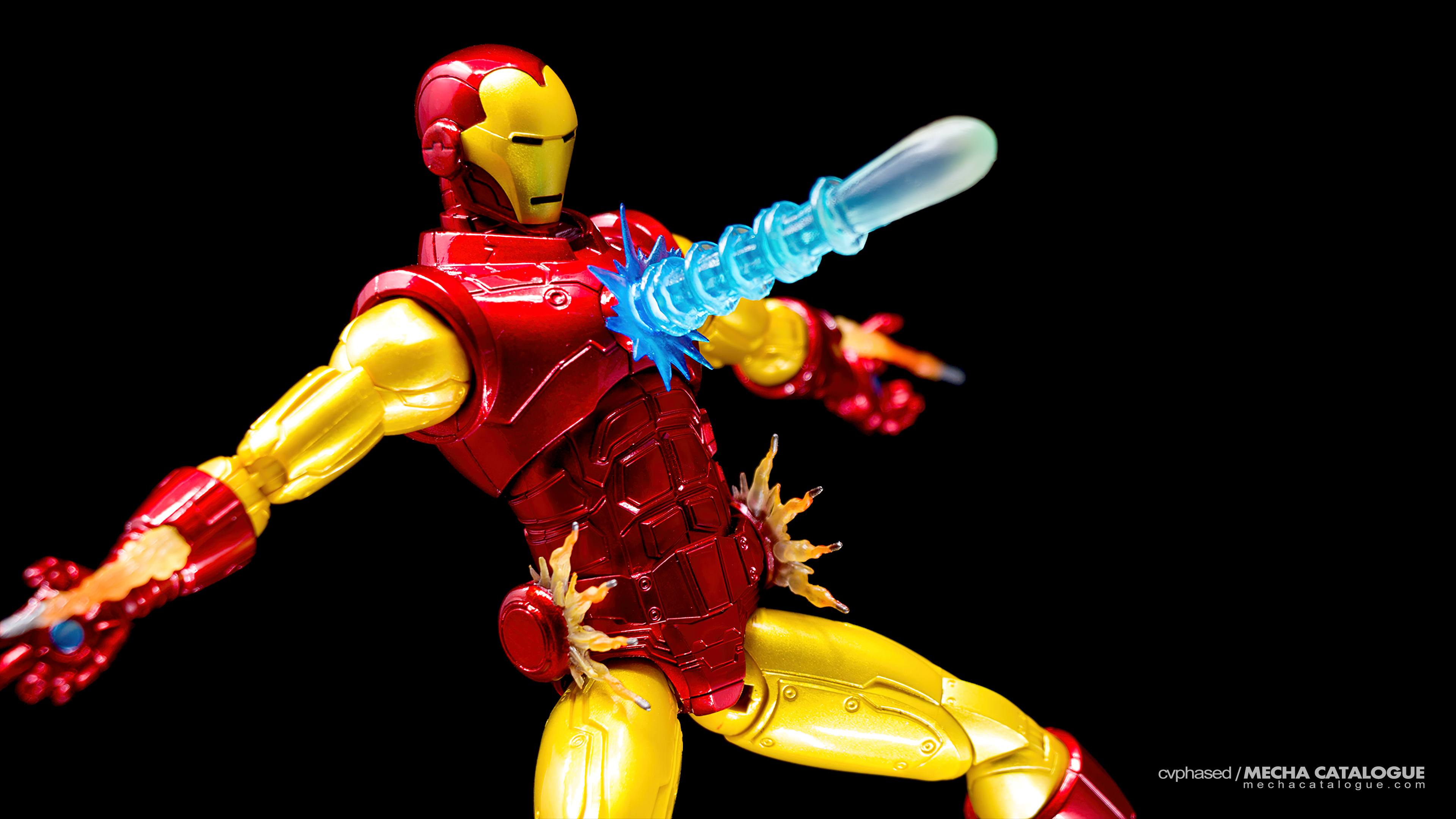 Like their previous releases, Mezco Toyz took liberties with the classic Iron Man Model 4 design, reinforcing the armored look through prominent panels and rivets. Though unlike their previous releases, Iron Man doesn’t have soft goods clothing, restricting the articulation less. Which perfectly segue ways to the articulation as Iron Man has all the essentials and is easily comparable to S.H.Figuarts. The only limitations are the sideways movement of the ankle joints. It also features a removable visor held by magnets to reveal Tony Stark, though I’ll probably keep it attached. More importantly, the Arc Reactor lights up, with batteries included to boot. Lastly, Iron Man comes with a plethora of blast and thruster effects, and additional parts to deploy its various weapons.