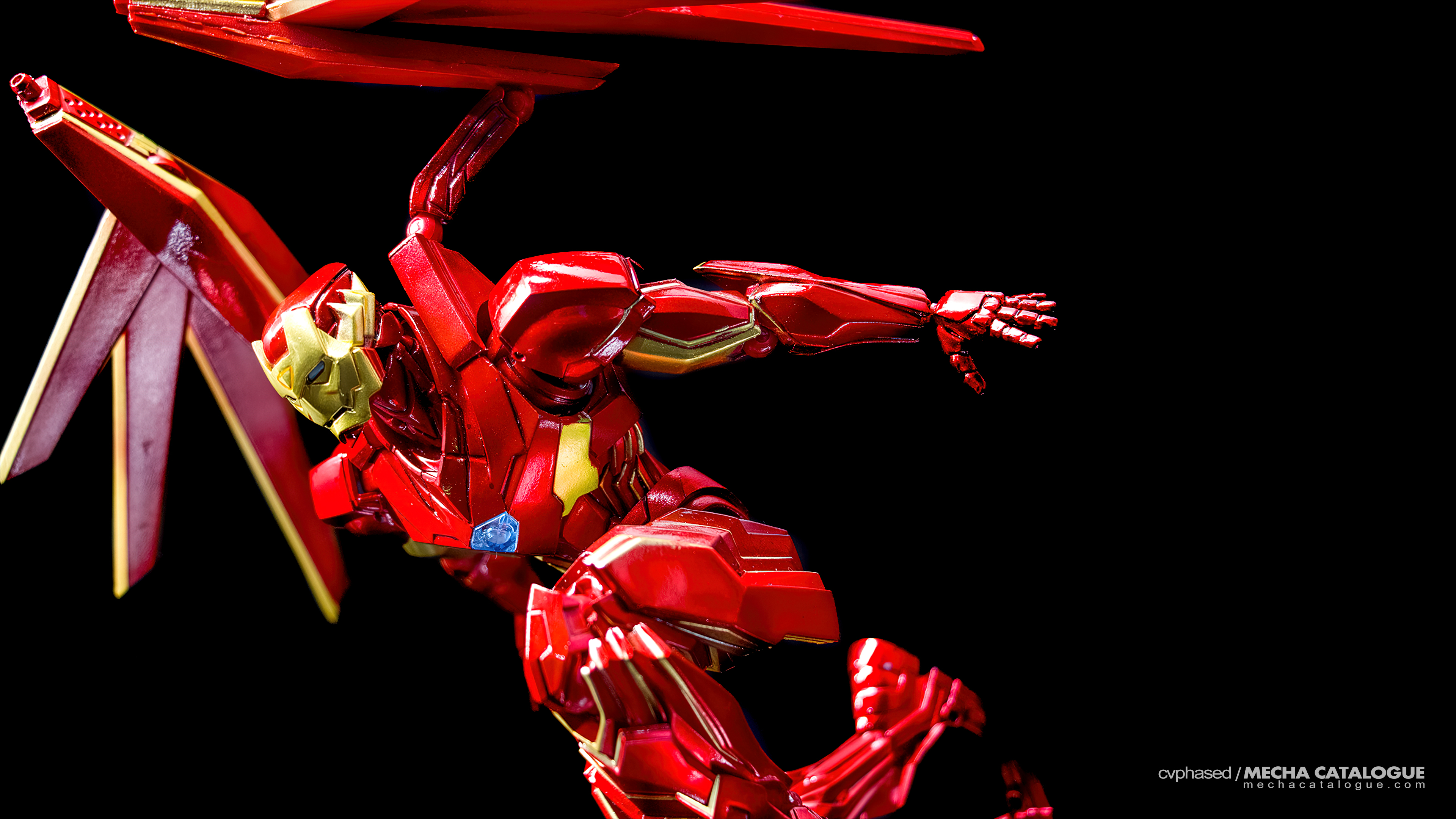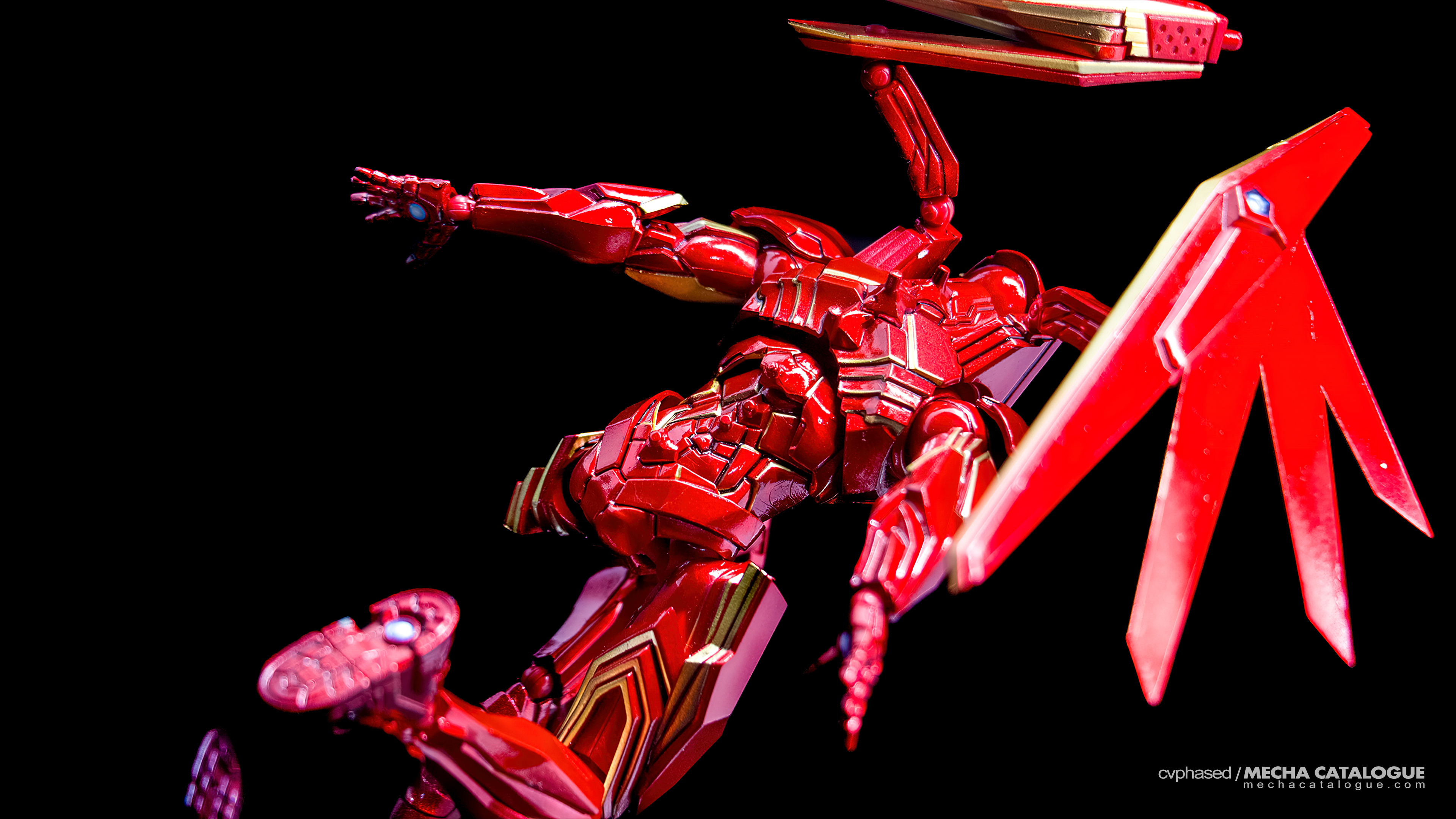 TL; DR, yes. But let’s not get ahead of ourselves. At a glance, Variant Bring Arts Iron Man is mostly red with a layered panel aesthetic complemented with gold edge accents. Blue is used sparingly on the Repulsors and the clear blue Arc Reactor piece. Despite the redesigns, it still has the same Iron Man visual beats. Going through the articulation, we encounter its primary issue: loose joints. Specifically, those of the hip and knee assemblies. The hips use universal joints and work fine with neutral poses, but not so much in dynamic ones. Same is true with the knees, which are double joints connected via circular pegs to the upper and lower legs. Ideally, these pegs are good knee swivels, but being loose just adds more problems than benefits. The overall articulation range would’ve been good, actually even great, if not for these weak joints. Ironically, the stronger joints are found on its primary accessory: two backpack attachments that open to reveal Freedom Gundam-esque wing binders. They can also be used individually as handheld blades or a shield when combined, providing a play pattern different from your usual Iron Man figure. This would’ve been an impressive set if not for the issues mentioned, not to mention its steep retail price. But if you really like this design, just wait until it’s on discount.
