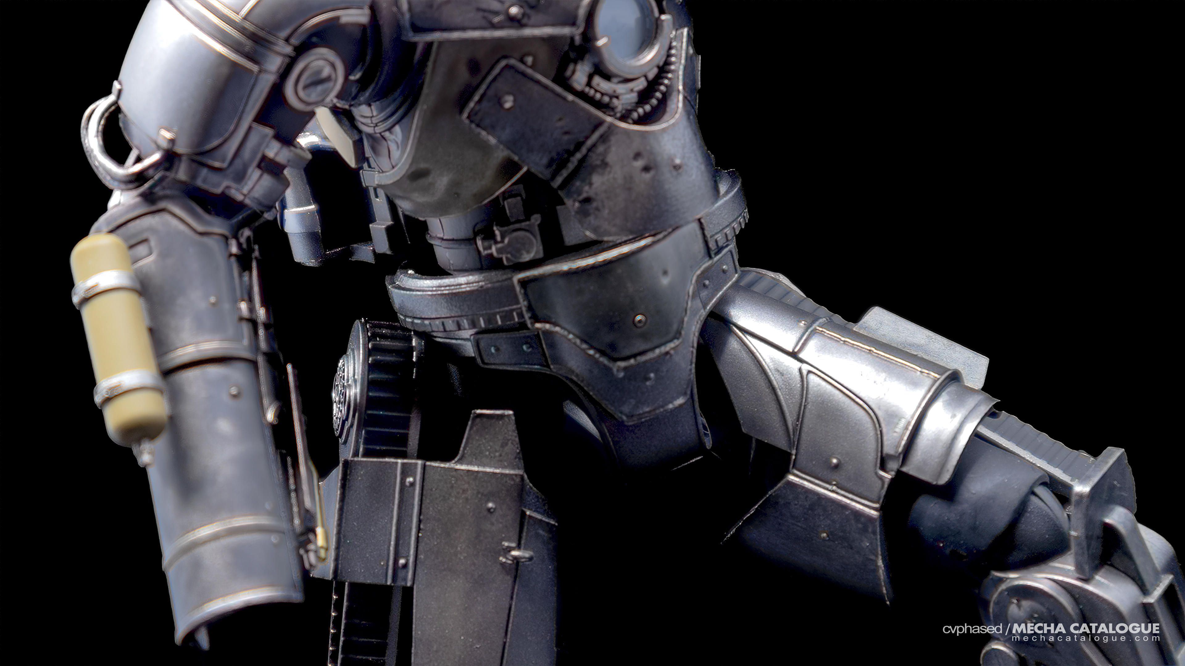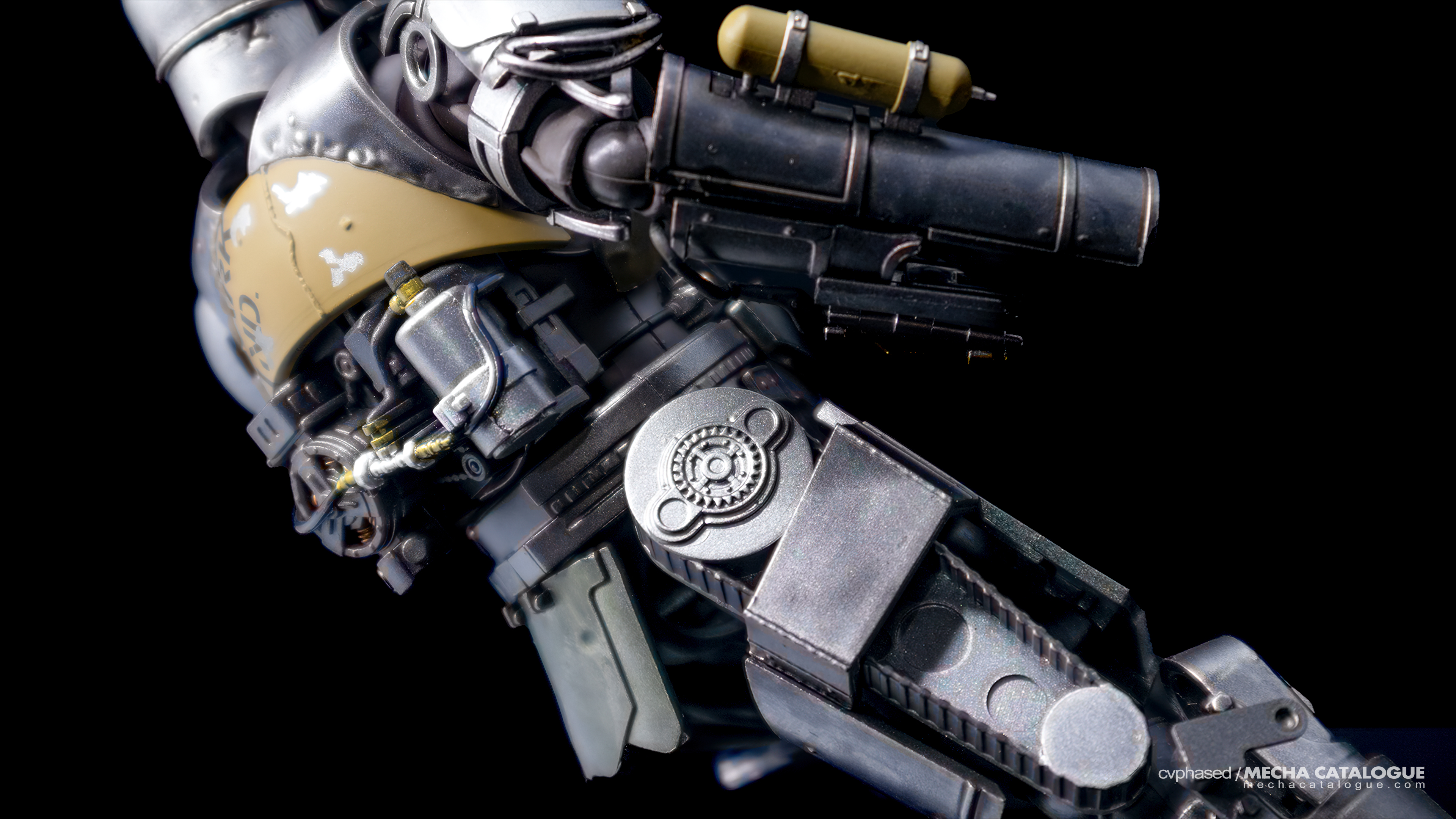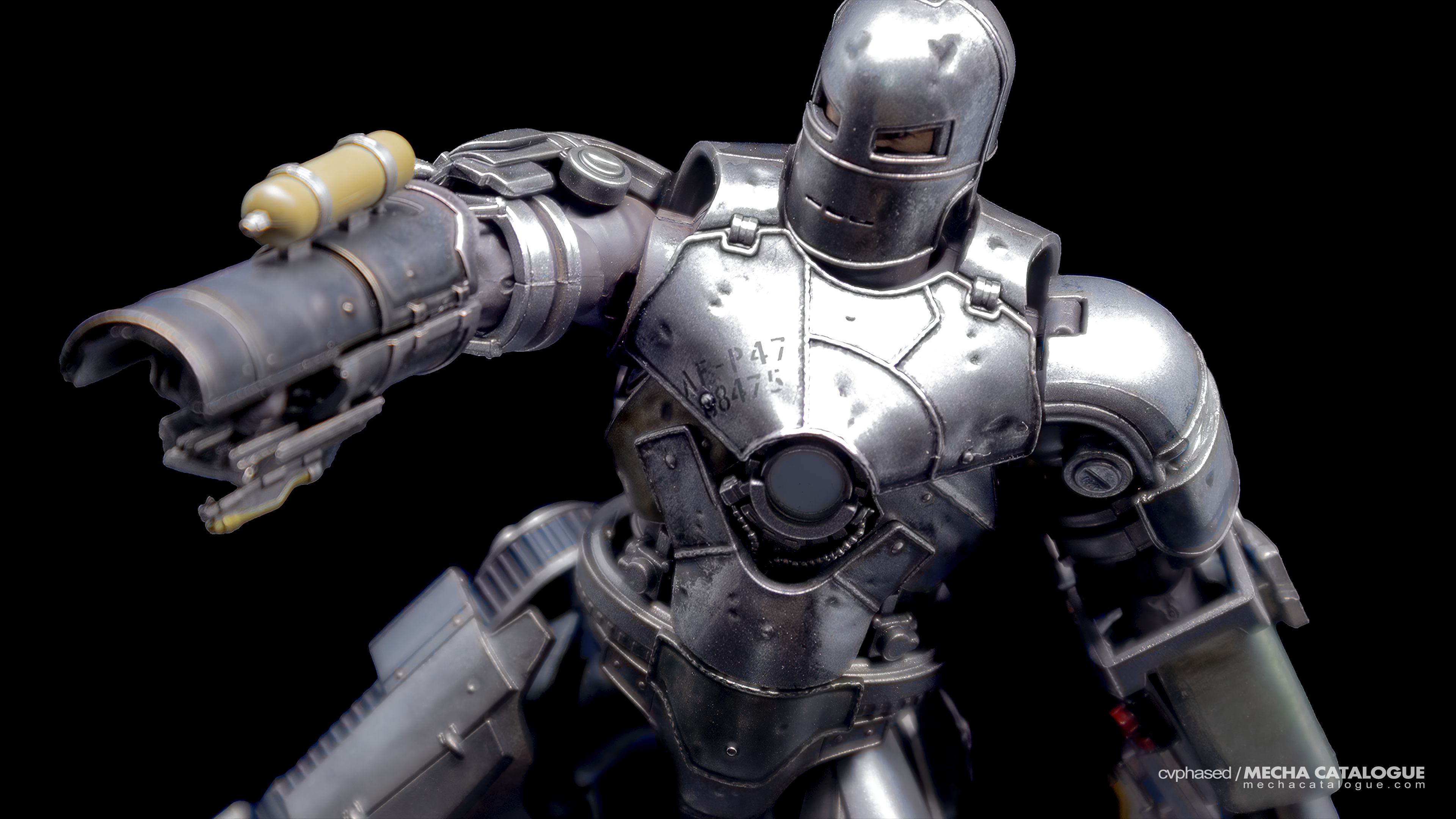 Iron Man Mark 1, as Obadiah Stane angrily puts it, was made in a cave with a box of scraps. And this figure does feel made with a box of scraps, not in build quality but in sculpted and surface details. A signature characteristic of the Mark 1 is all the exposed components and machinery that keeps it running. As expected from an S.H.Figuarts release, this figure doesn’t skimp on details, especially on the improvised power source seen at the back, and the large power transfer belt assemblies going from the hips to the knees. The use of multiple textures and printed markings on various surfaces also adds to the effect of being made from mixed parts despite the smaller scale. What they did skimp on is the Arc Reactor, where it’s usually a clear piece on top of a detailed part of previous figures. For this guy, it’s just a light blue plainly painted area, something you’d see more on a Marvel Legends figure. Articulation is on par with its on-screen counterpart, meaning it’s got basic movements but don’t expect it to do dynamic poses. To compensate, the figure comes with a good set of accessories: including another pair of hands, and a replacement Tony Stark eye part which requires removing the front face plate to use, and several flamethrower and thruster effect parts to recreate the Afghanistan escape scene.