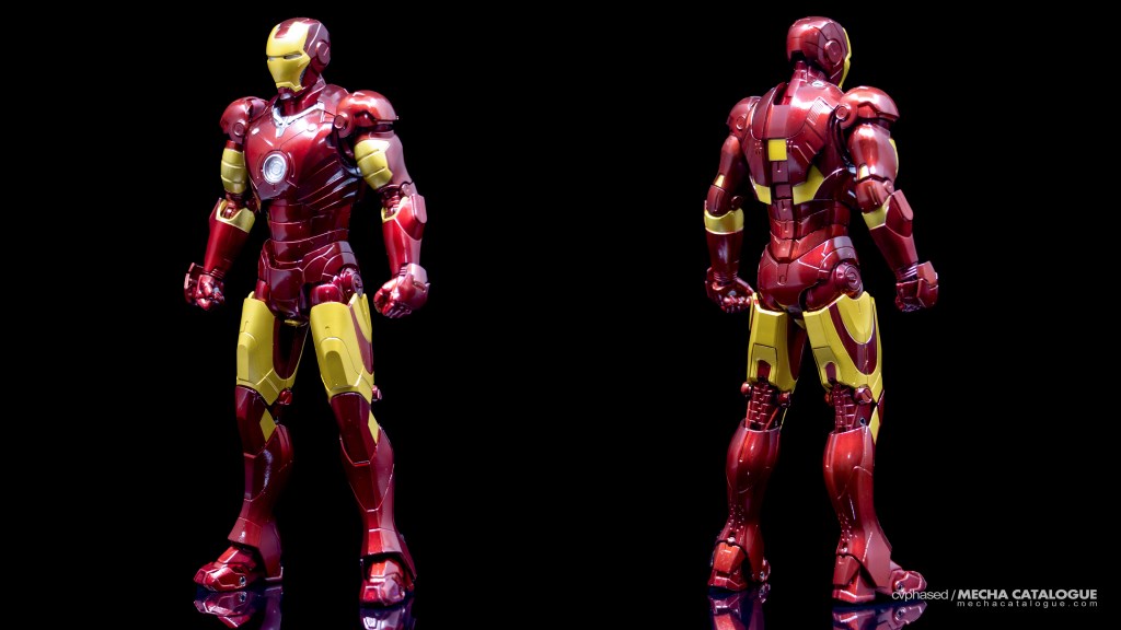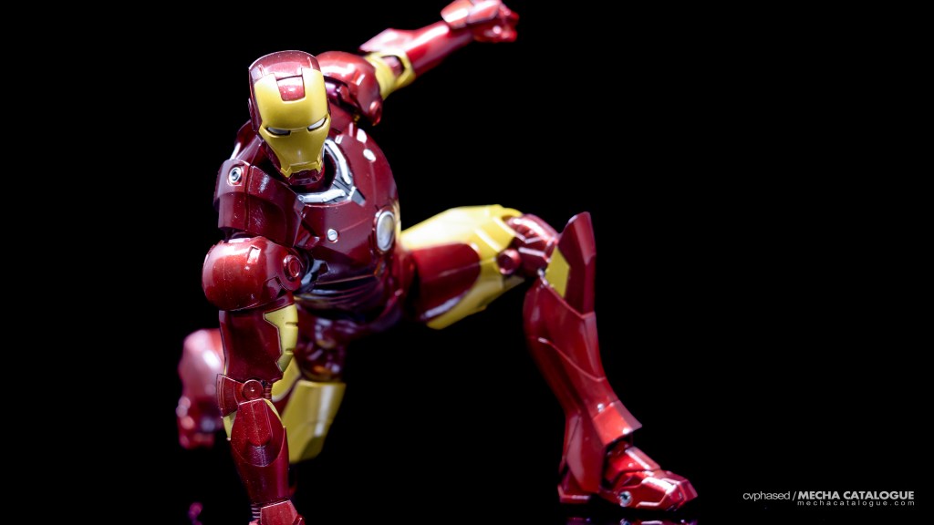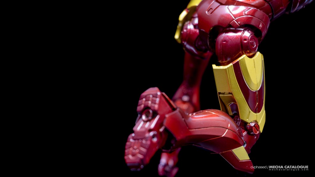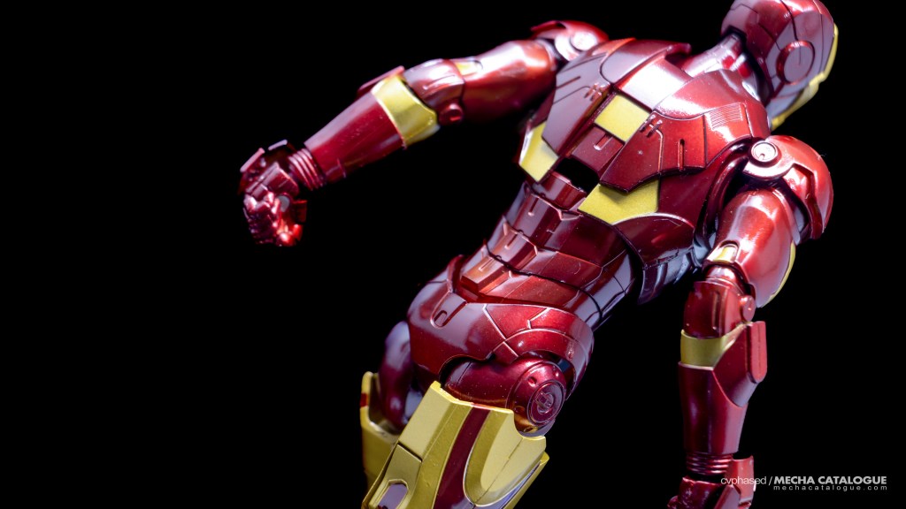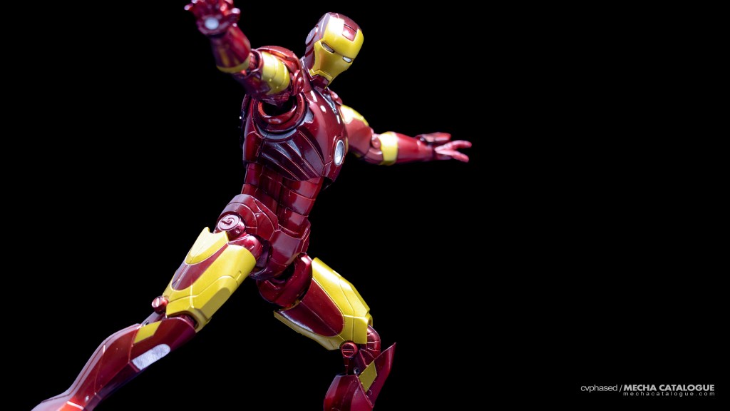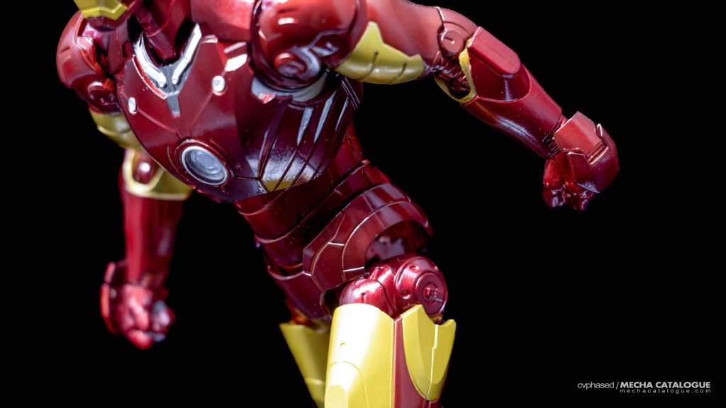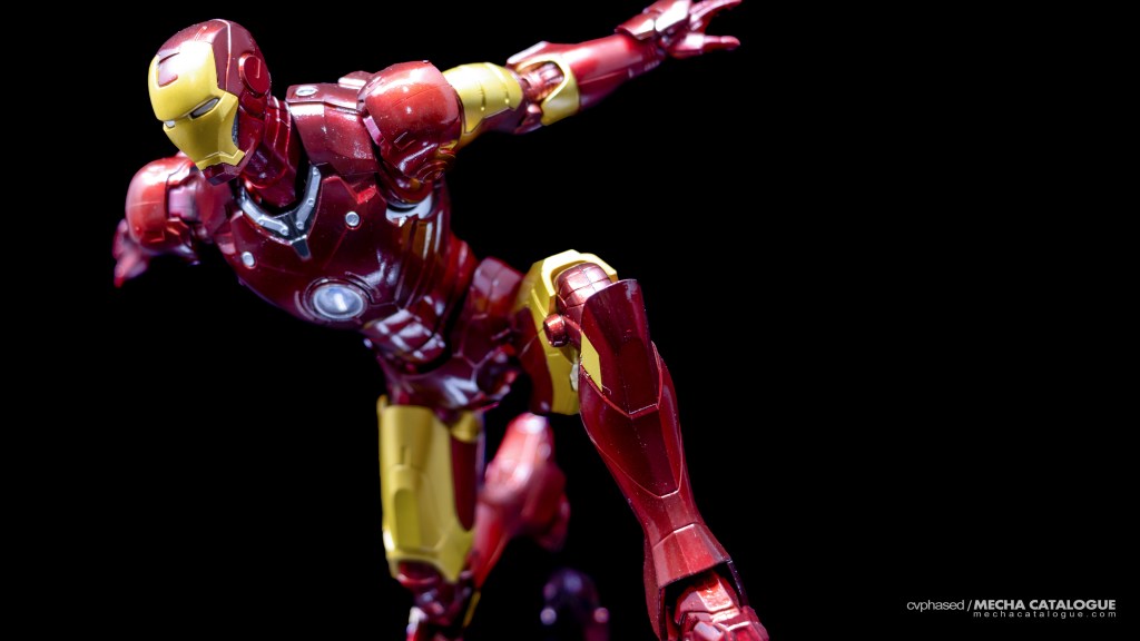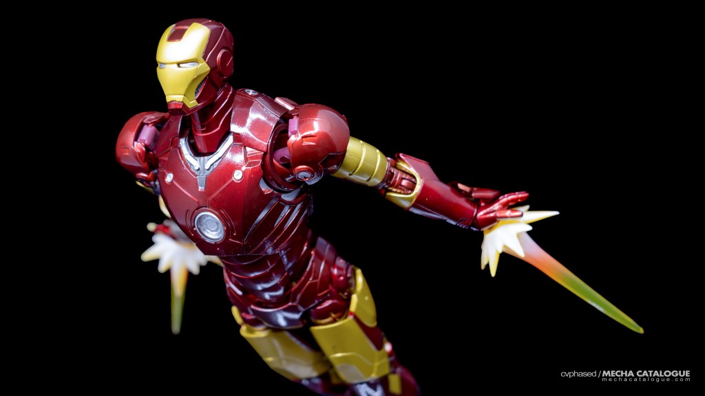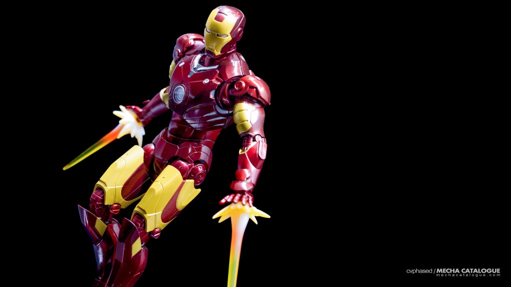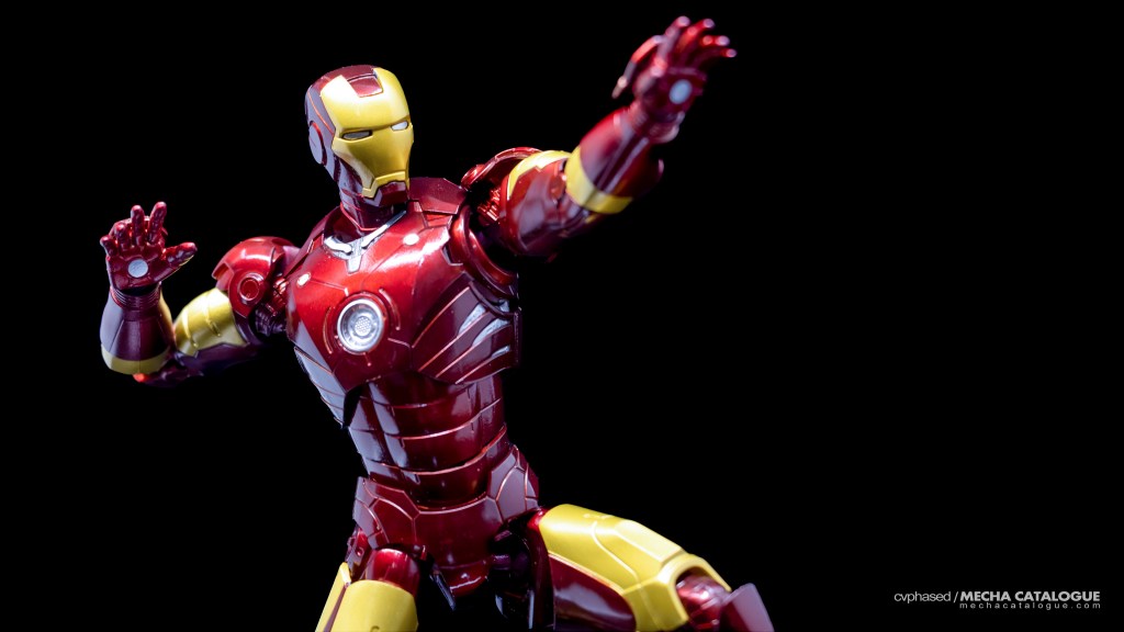 Whether you got just the figure by itself or the set with the Hall of Armor display, you have a fairly standard S.H.Figuarts Iron Man figure and all the bells and whistles that come with it. It has great proportions and excellent sculpted detail topped with a coat of candy red paint you’ll never get tired looking at. Articulation is also standard with the expected double joints and the shifting hip assembly to allow that signature ‘superhero landing’ pose. For accessories, the Mark 3 comes with the same set of effect parts that come with other S.H.Figuarts Iron Man releases. The included replacement back parts with open flaps can also be used to display the Mark 3 in flight, albeit there are no details underneath, which breaks the illusion a little. And, in Tamashii Nations’ infinite wisdom, this figure has the annoying feature of requiring you to swap parts every time you need to change hand parts, which is carried over to all later Mark 3 recolors.
