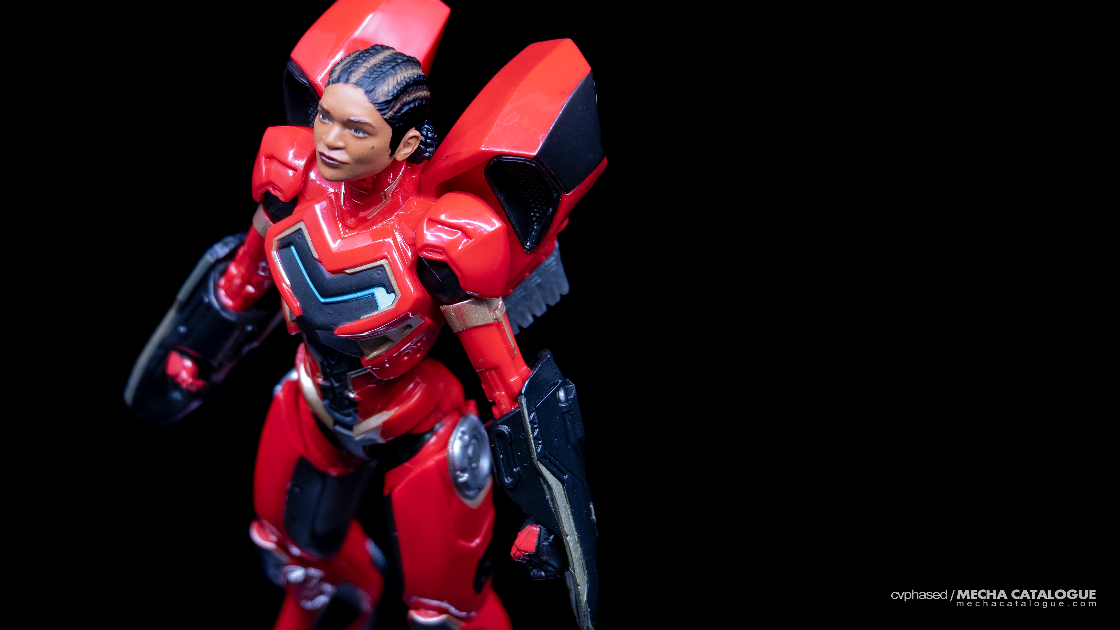 Though it’s a deluxe release, I didn’t have the highest of expectations. But I did hope for a better figure than your standard Marvel Legends. And to some extent, it is. For starters, details and proportions are great, though some might say the leg units are quite long – which I’ll charge to the design rather than the action figure. The paint application is decent as while Ironheart Mark 2 looks great when viewed from the front, all the paint budget cuts become visible at the back. Most notable are the mechanical details on the thruster pods which are just in the same red plastic as the rest, at least the thrusters use different plastic. Overall articulation is also decent but could be better. The same thruster pods can restrict shoulder and arm movement while the extended forearm armor makes Repulsor-firing poses a little awkward. The set also comes with a couple of accessories outside of blast and effect parts. These include a replacement forearm cannon and an unmasked Riri Williams head which, in my opinion, has a good semblance to the actor playing her.