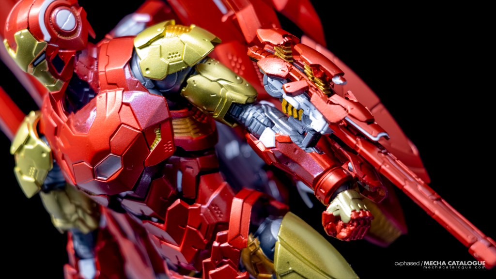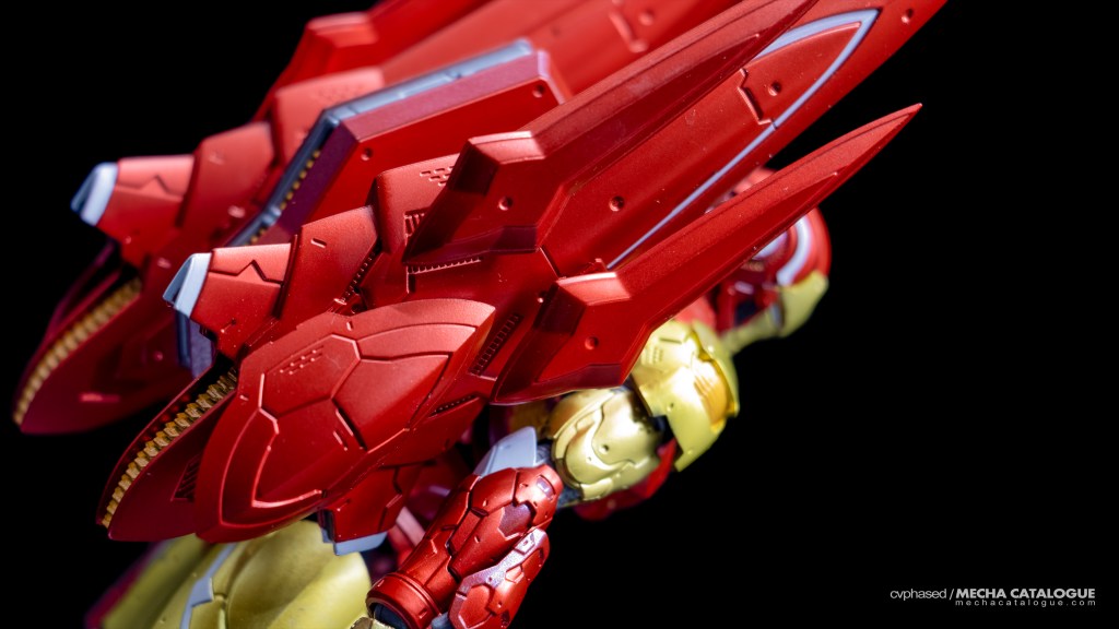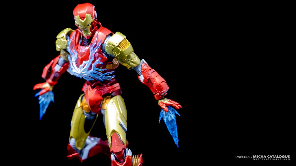 For starters, Tamashii Nations went on a different direction from Sen-Ti-Nel in that the armors have minimal similarities with each other while still looking Iron Man armors all the same. This allows each armor to have a distinct design and stand out, which is also the case for Iron Man. This Iron Man also has the classic colorway plus with all the nuances of from Eiichi Shimizu. Sculpt and paint work are excellent, with the reds using a two-one matte finish and gold paint we’ve come to expect. In its standard configuration, Iron Man is fun to put into dynamic poses thanks to abundance of articulation points. Then we have the DH-10 (for “Do Hatsu-10”) Mode which requires connecting the large Repulsor backpack unit, and replacing several panels. It looks okay, albeit a little busy. I do want to highlight how loose the DH-10 replacement part for the Arc Reactor. You technically don’t need to but it has all those effect pieces that complete the look, which would look great if it isn’t a little too loose for my liking. Fortunately, the joints don’t share the same looseness and it can stand on its own when in DH-10 Mode, though you’ll definitely need the included flight stand for those dynamic poses. Lastly, it has an assortment of effect parts that, along with the figure itself and accessories, keep you busy for a good while.