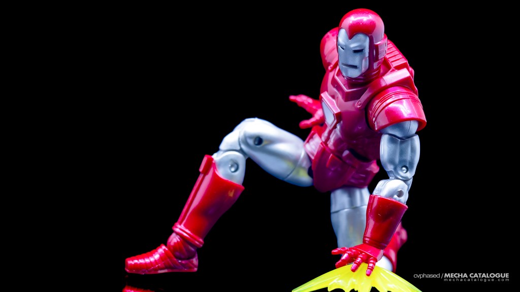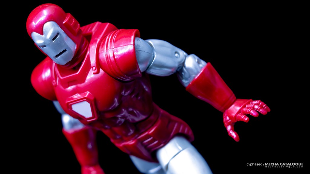 The sculpt and proportions are excellent, giving the impression that there’s a real person inside the suit. The design also supports a wide range of motion, with clever articulation like the triangular shoulder pads that rotate in sync with the shoulder joints—allowing for full arm rotation. The rest of the articulation is standard for modern Iron Man figures, enabling dynamic poses. However, one odd design decision stands out: the neck joint. Typically, Marvel Legends figures use either a double ball joint or a ball-and-hinge system, with the ball embedded deep into the helmet. In this case, the helmet and neck are molded as a single piece. This results in a visible gap when the head is tilted in certain poses. It’s not a dealbreaker, but it can be distracting. As for accessories, the figure includes the usual set alternate hands and Repulsor blast effects.