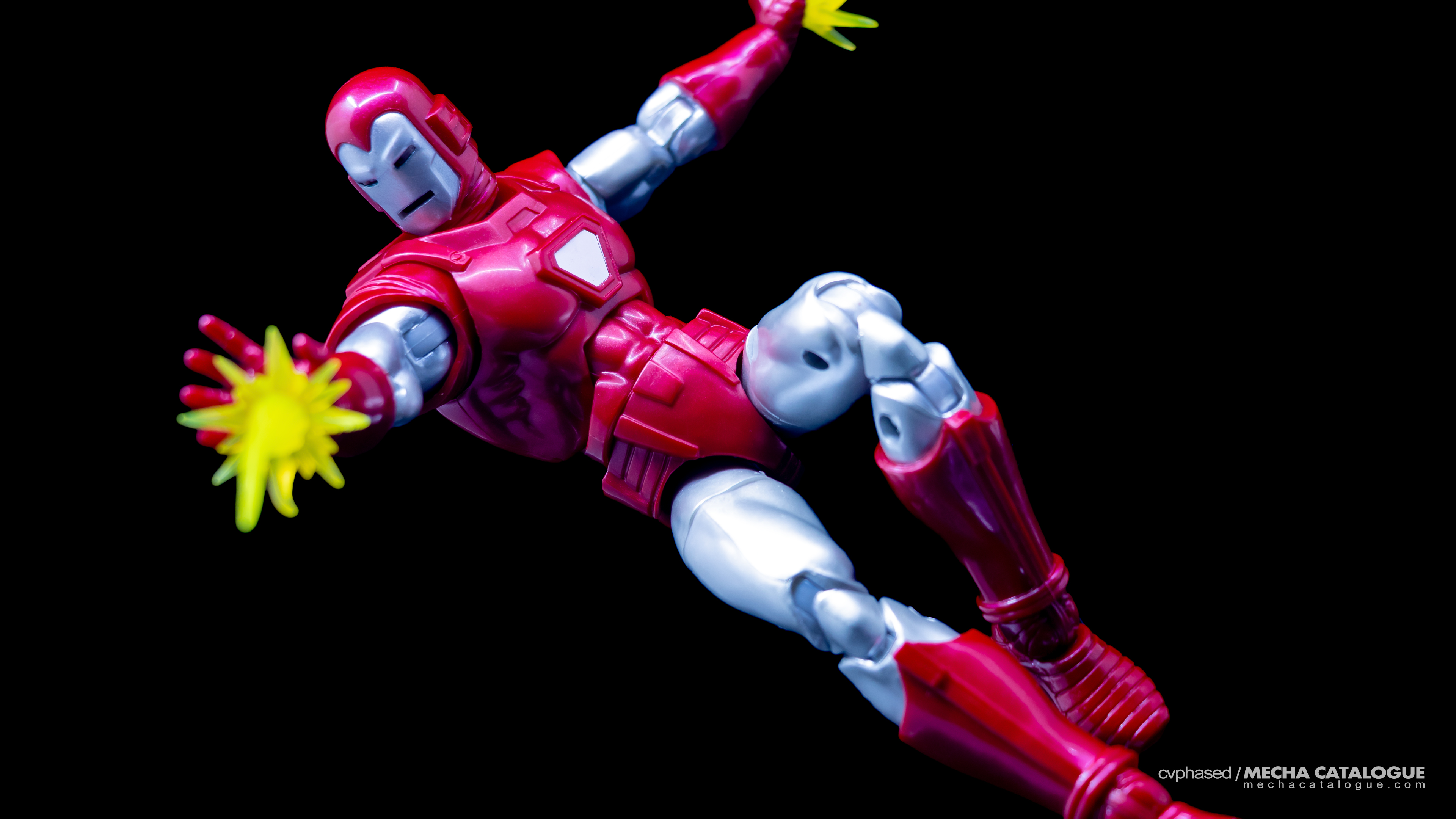 The sculpt and proportions are excellent, giving the impression that there’s a real person inside the suit. The design also supports a wide range of motion, with clever articulation like the triangular shoulder pads that rotate in sync with the shoulder joints—allowing for full arm rotation. The rest of the articulation is standard for modern Iron Man figures, enabling dynamic poses. However, one odd design decision stands out: the neck joint. Typically, Marvel Legends figures use either a double ball joint or a ball-and-hinge system, with the ball embedded deep into the helmet. In this case, the helmet and neck are molded as a single piece. This results in a visible gap when the head is tilted in certain poses. It’s not a dealbreaker, but it can be distracting. As for accessories, the figure includes the usual set alternate hands and Repulsor blast effects.