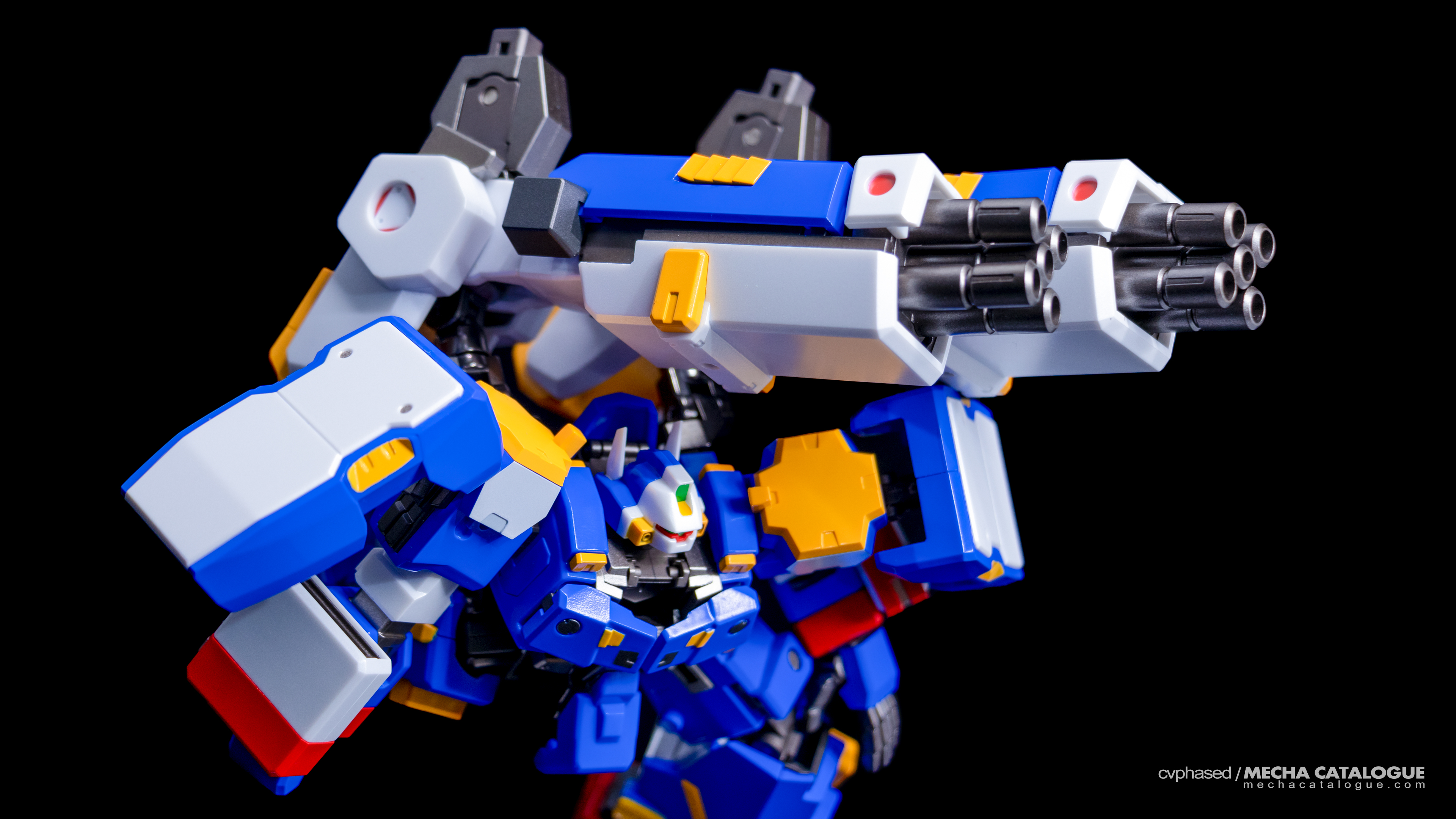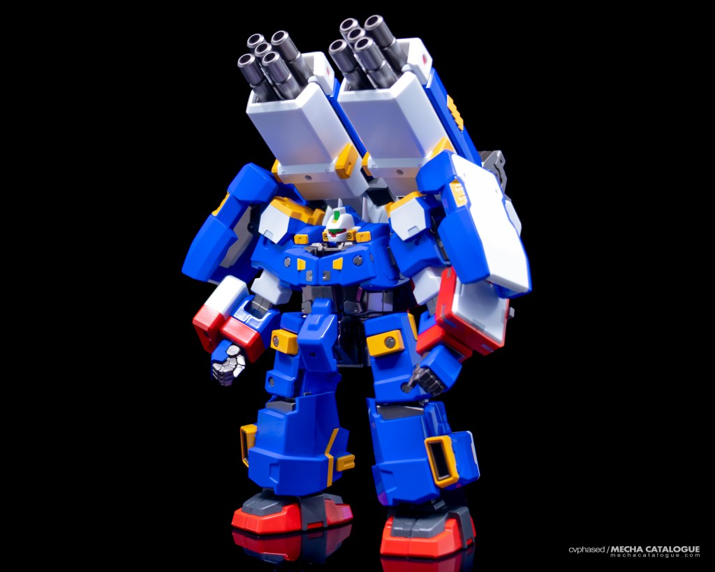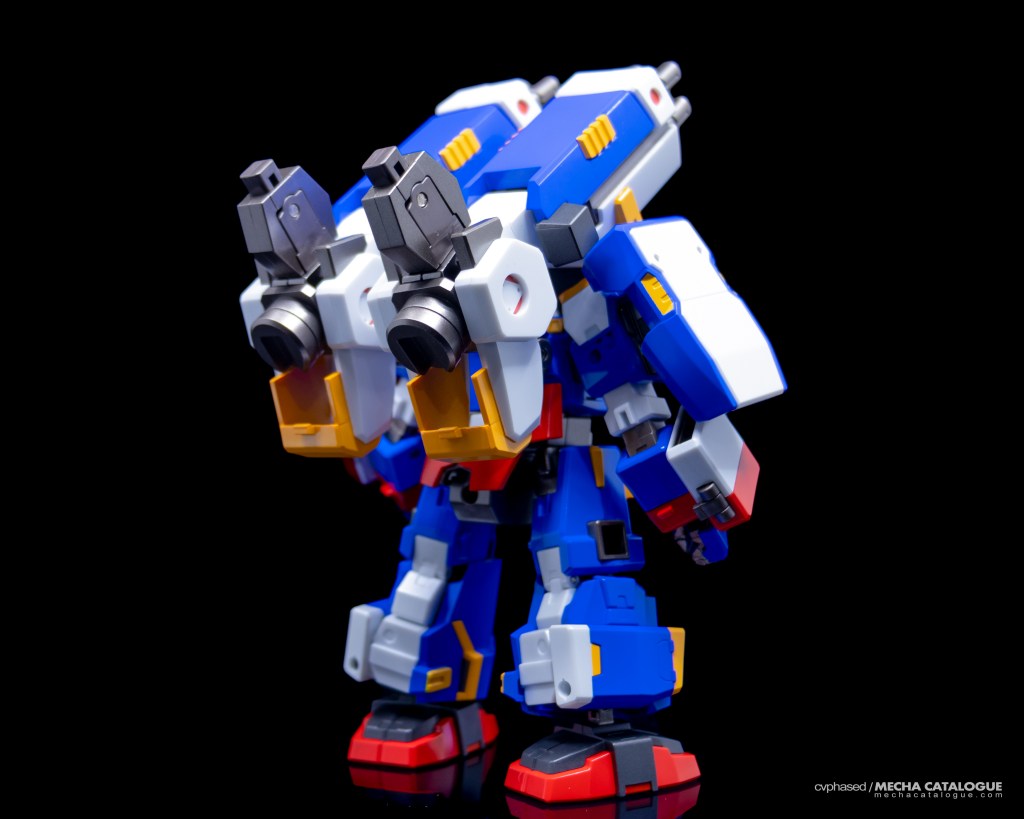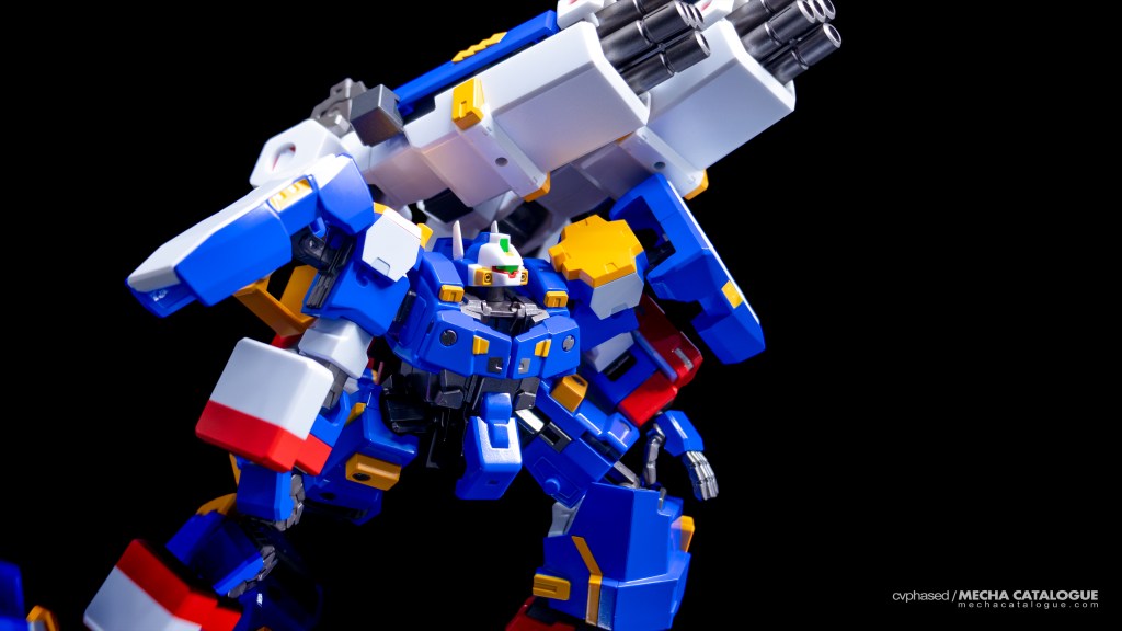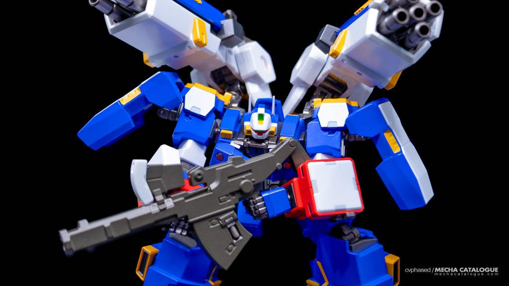 Fortunately for collectors, the second SRX set is being sold as the R-2 Powered with all the Plus Parts included in the box. For this upgraded configuration, the base unit receives new shoulder armor parts and a pair of massive Hi-Zol Launchers. This ultimately creates a top-heavy figure as the leg units don’t get upgrades. But thanks to the die-cast internal construction, the completed R-2 Powered is still quite stable. On the other hand, the modest articulation of the base unit is now limited by the new armor parts as these tend to collide with each other with every movement. The two Hi-Zol Launchers connect to the back of the R-2 with die-cast arms with tight joints. They can be too tight so adjusting them can be quite a challenge, especially if you want the launchers to be perfectly symmetrical. I suggest caution with making these adjustments to prevent stressing any parts. Lastly, the display base is able to support this massive figure for aerial poses without any additional issues.