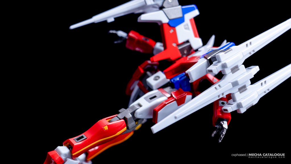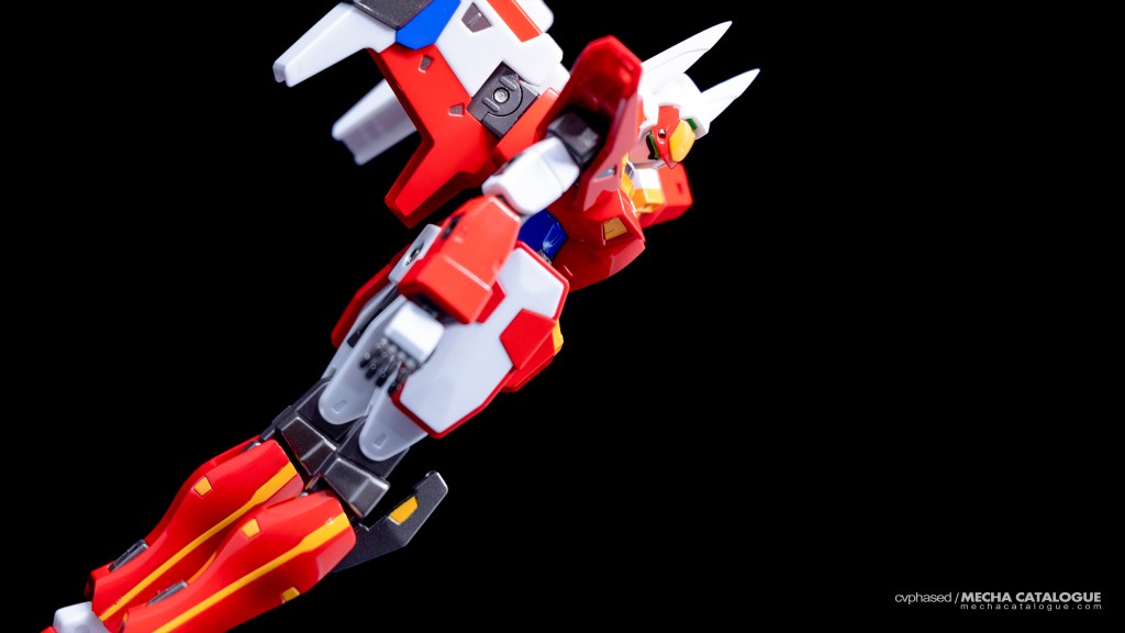 Fulfilling the role of the commander unit that specializes in both reconnaissance and long-range combat is the R-3, evident in its nimble design that focuses on agility, and is well captured by the RIOBOT version. That said, the design also presents some challenges during display, mainly because of its small footprint that leaves not much room for stability, especially after attaching the pair of grouped Strike Shields. Thankfully, this set also includes a display stand, especially for its R-3 Powered configuration. Speaking of the Strike Shields, they’re basically like the Nu Gundam’s Fin Funnels although you don’t get additional parts to display them deployed. RIOBOT R-3 also comes with its Telekinetic Converging-Type Laser Cannon but, as it’s apparently becoming a trend with these RIOBOT SRX figures, the wrist ball joints aren’t strong enough to hold the cannon singlehandedly. Basically, maximizing the display value of this figure means you will have to use the included stand for support.
