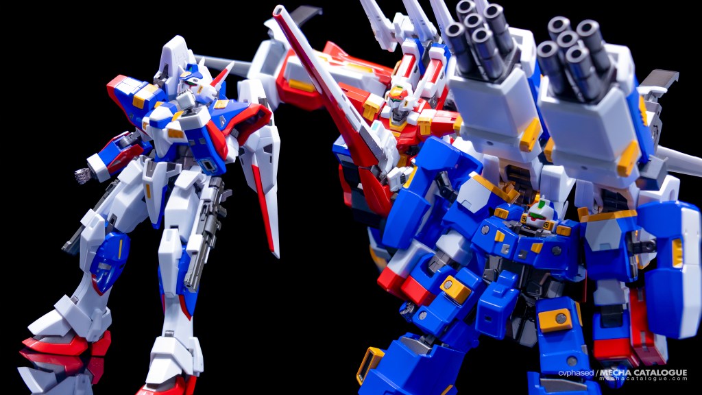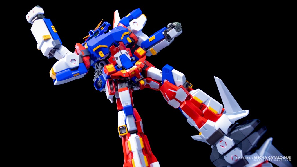 Much like the individual figures, both the manipulator hands and the optics of SRX illuminate under UV/black light. The individual digits are also articulated for more dynamic expressions. The weapons of each R-Series machine can also be attached to the combined form though personally, I’d advise against it since it only adds to more parts that can possibly fall off. Still on weapons, SRX also comes with its signature Z.O. Sword which you can display as being deployed from the chest unit. You can then attach a translucent green blade piece as it’s fully deployed. The SRX can hold the sword with a special piece that locks with the slots on each palm. Lastly, you can use the large display base that comes with R-3 Powered to prop up SRX, but it can very well stand on its own.