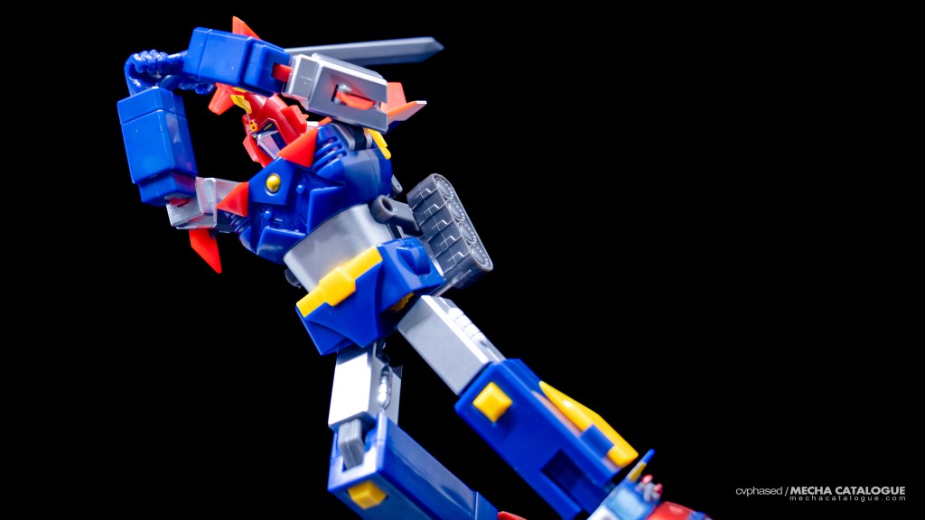 For starters, the individual Volt Machines look great, with each having translucent blue plastic for the canopies. I definitely appreciate the inclusion of nuances for each Volt Machine, like the fins of the Volt Bomber or the antennas on both the Volt Frigate and Volt Lander. Volt Panzer even has articulated Panzer Arms while Volt Lander has deployable Lander Missiles. Their transformation and combination are also faithful to the animation, and to their larger and more expensive toy counterparts, albeit with some liberties. Most notable is how the face of Voltes V is always visible at the bottom of Volt Crewzer. But other than that, what we get is a great combining Voltes V figure with acceptable articulation for its smaller size. I do have one caveat though, and this might just be limited to my copy. The locking clip on the left Volt Lander on mine is quite loose and it causes the left foot to fall off with the slightest touch, which is a bummer since all the other locking clips are quite tight. Outside of replacement manipulators, Mini Action Voltes V comes with a single, and most important, weapon – the Tenkuu Ken. You’re also able to pull out the V crest on its chest for screen accuracy when using the weapon.