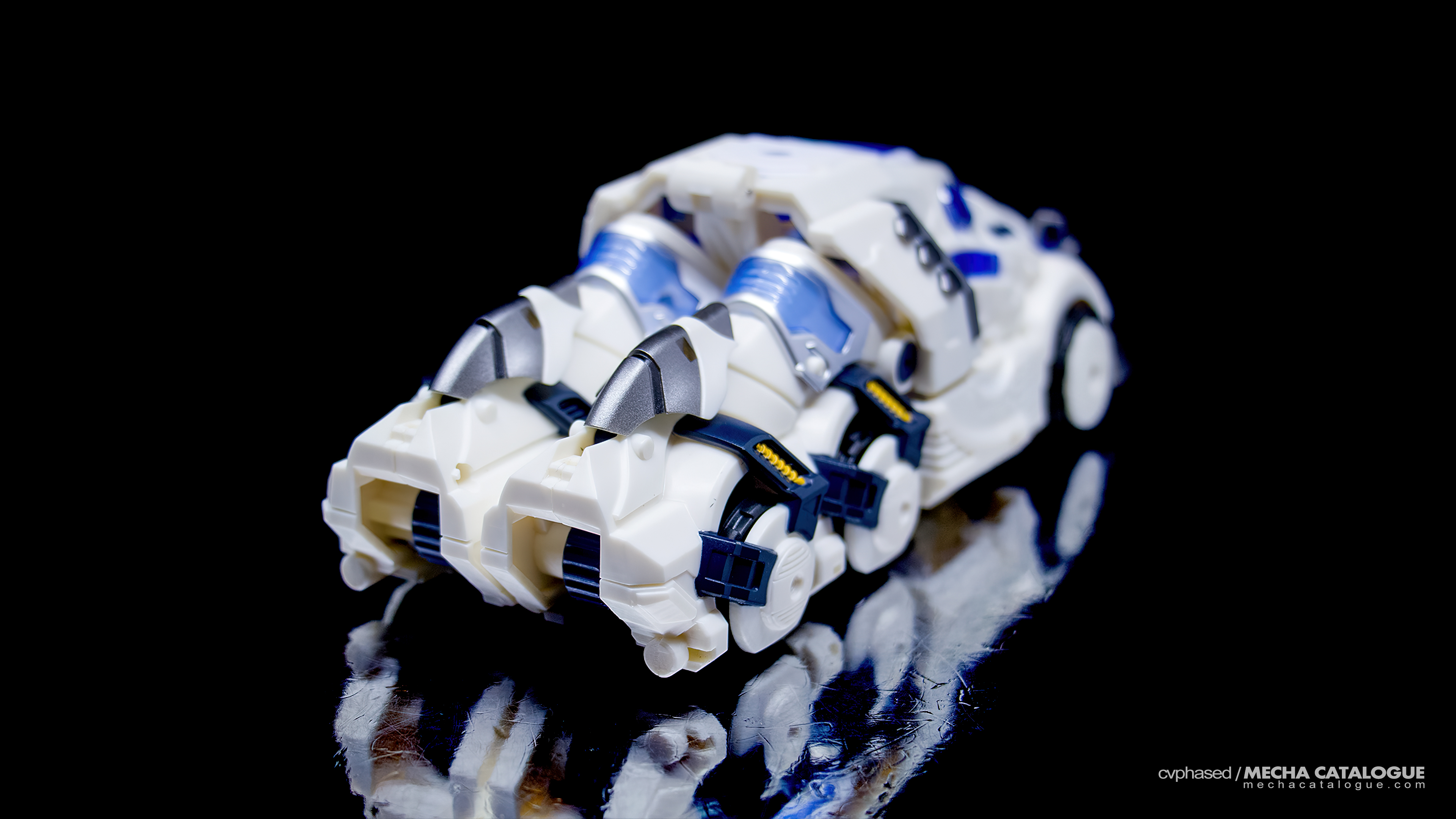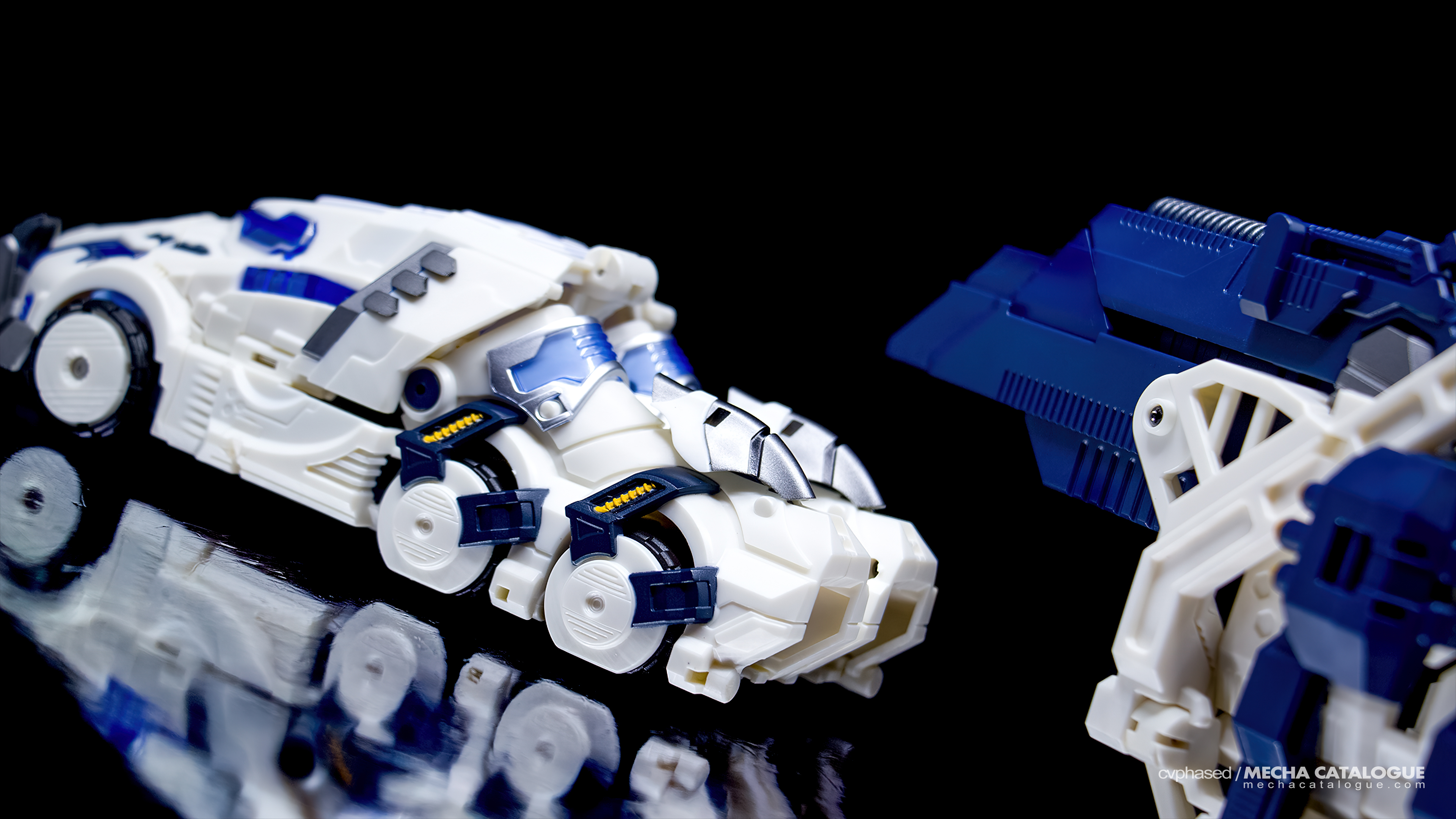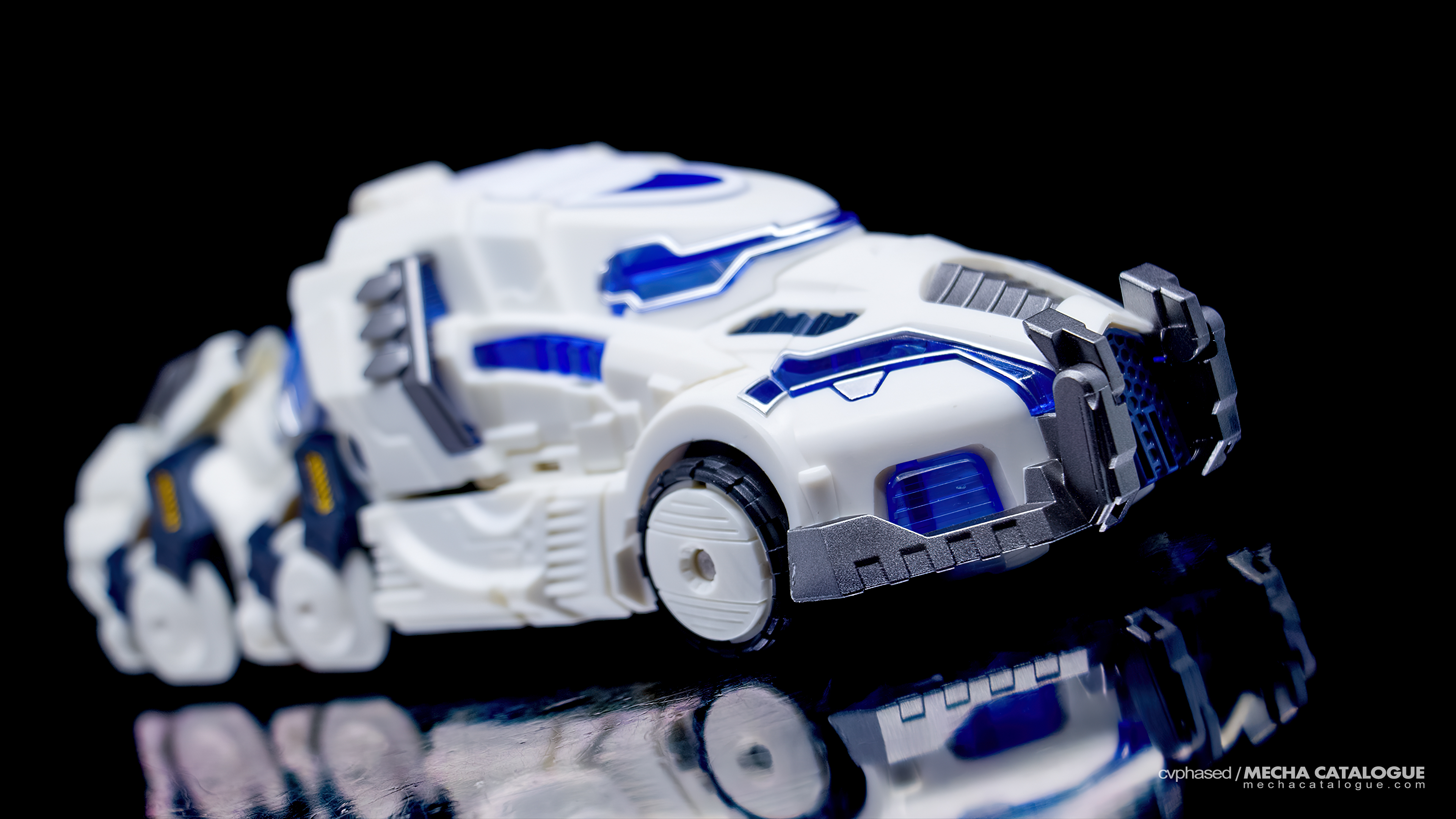 By itself, Seraphicus Prominon [Core], doesn’t really look like Nova Prime. In fact, there were discussions whether the figure actually represents Prima, the first Transformer. In any case, handling the figure feels really solid, albeit a little light and hollow to facilitate the transformation. Fortunately, there are panels to cover these gaps and fill the overall silhouette. Being in development for four years, its overall engineering is dated compared to modern Mastermind Creations releases, and this is evident in the articulation. Both the elbow and ankle joints provide wide ranges, though the same can’t be said with the shoulder and hip joints, especially for outward movement. Still, the figure can do very decent poses coupled with the included accessories. Seraphicus Prominon [Core] comes with two translucent swords very similar to those Drift uses in the comic books, a revolver with working bullet chamber, and a Matrix of Leadership-esque artifact that fits in the opening torso chamber. It then transforms to a very sleek truck, though the transformation process isn’t the easiest. It requires flexing some of the plastic panels beyond comfortable tolerances. But once completed, all these panels lock tightly into something so sleek it looks like a pair of sneakers.