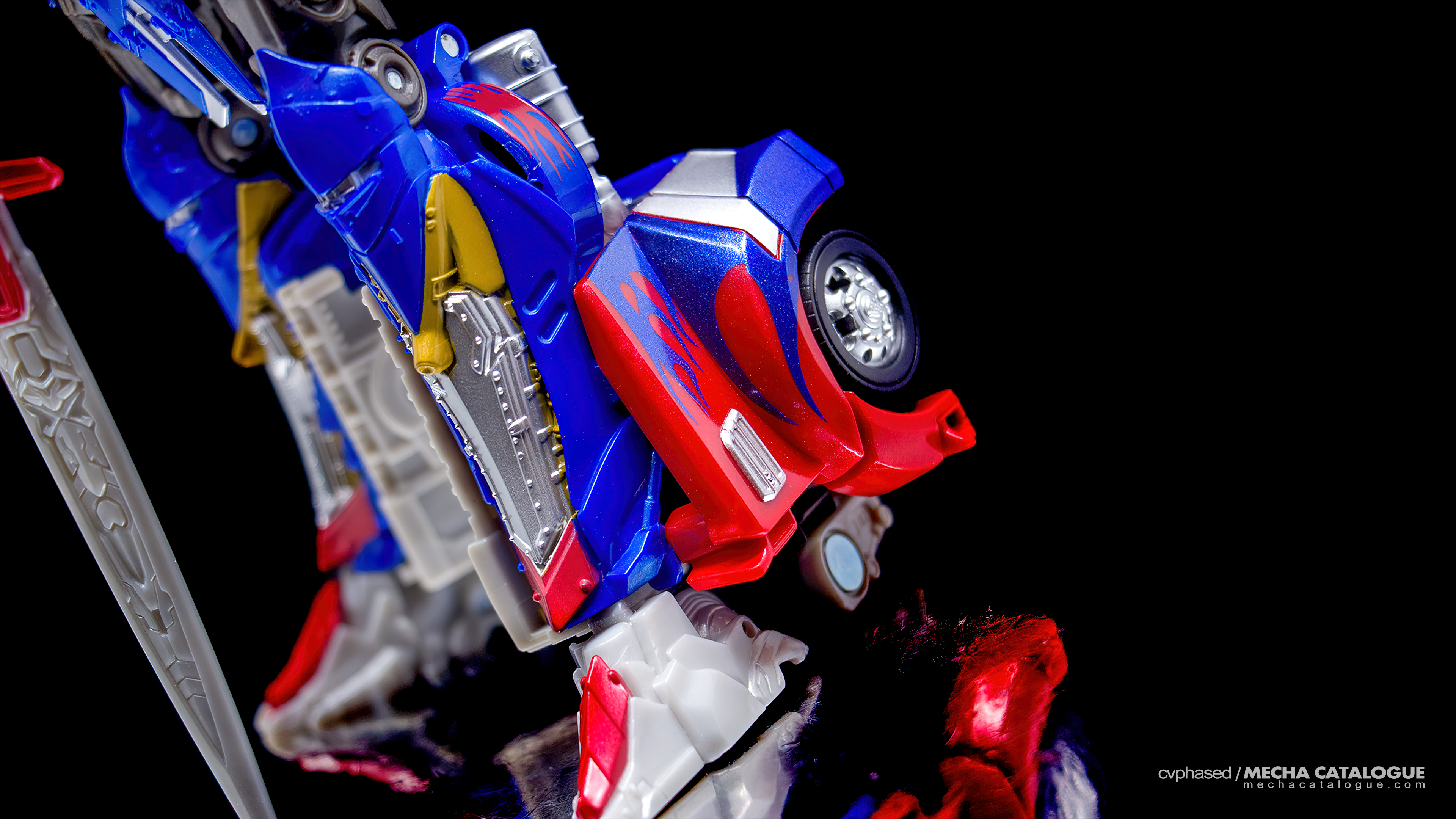 Unlike its Age of Extinction counterparts, the smaller The Last Knight version has better transformation, resulting in a cleaner robot mode. And while we’ll never get a transforming figure fully accurate to the original design, both modes are at least integrated much better. Optimus Prime has copious amounts of sculpted detail, but the paint application has much to be desired. For the regular retail release, most of the flame deco is seen in vehicle mode but not so much when transformed. Those who want a more premium-looking and screen accurate figure may get the San Diego Comic Con 2017 exclusive version, as seen here. Articulation is standard fare, but those leg and back panels will likely cause issues when it comes to dynamic poses. Though you have to admit, this version of Optimus Prime looks really good in a neutral standing pose, especially when wielding its sword. Speaking of swords, Optimus Prime comes with the sword and shield he uses in the movie, but again, paint will depend on what version you have. Each weapon has storage options in both robot and vehicle modes.