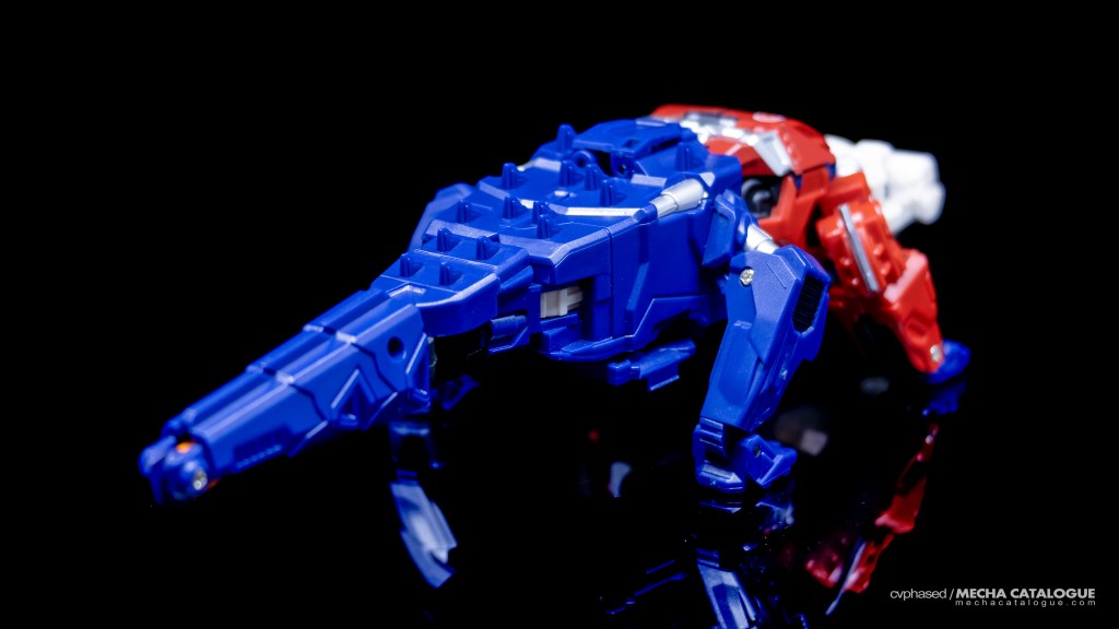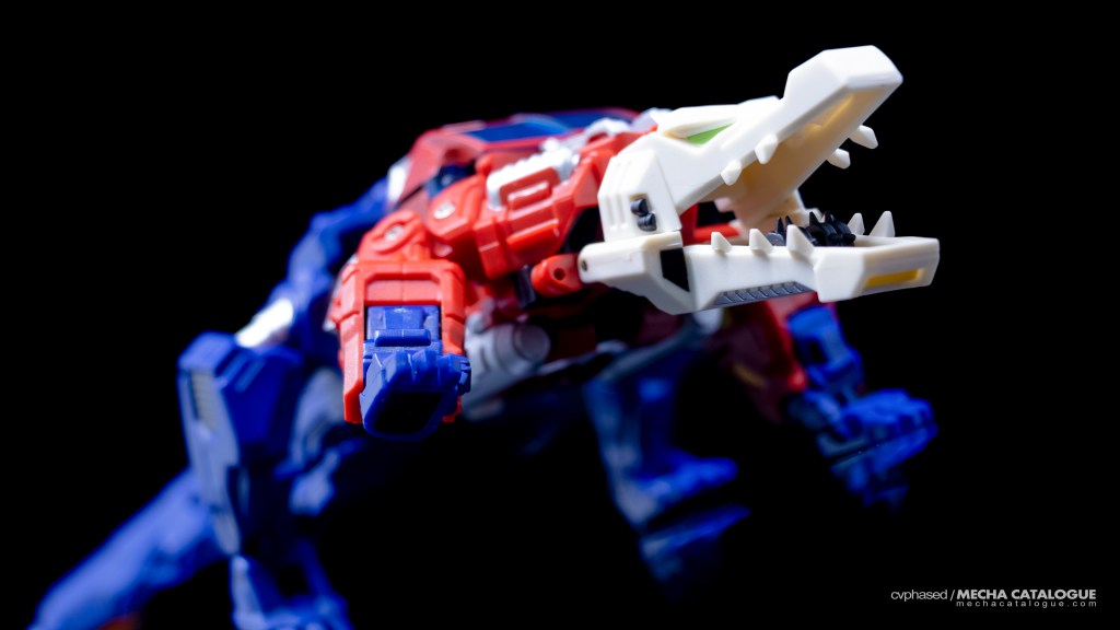 Besides the obvious Optimus Prime recolors, the figure also replaces the original Skullcruncher head with the one that came with Code (their version of Chromedome) for that signature Prime faceplate. Talking about its aesthetics, Positum looks great with the copious amounts of sculpted detail matched with the equally amazing paint work, especially the mechanical panels on its back. Articulation is average but you can still put this figure in any pose with the joints in place. The arms have swivels both before and after the elbow joint, the latter seemingly a wrist swivel replacement. This would be especially useful when used with its single accessory, an Energon sword transforming from its tail in alligator mode. Speaking of alligator mode, it really evokes the look from the classic episode with how the colors are applied. It also has enough articulation to put the figure in menacing poses you see from alligators. It also has an opening canopy to seat the Headmaster in alligator mode.