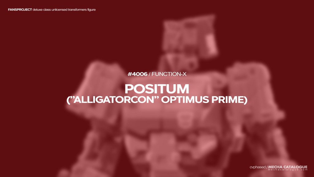 FansProject might be one of the earlier players in the third-party Transformers scene, but they have produced such quality products that their releases are still being bought to this day. They were also one of the first groups to reintroduce the Headmaster concept into modern Transformers figures, years ahead of Hasbro and Takara Tomy, with their Function-X line. One of these is Positum, a recolor of Crox (their version of Skullcruncher) and is a homage to the original The Transformers episode “City of Steel” where Optimus Prime was disassembled and turned into Alligatorcon by the Constructicons.