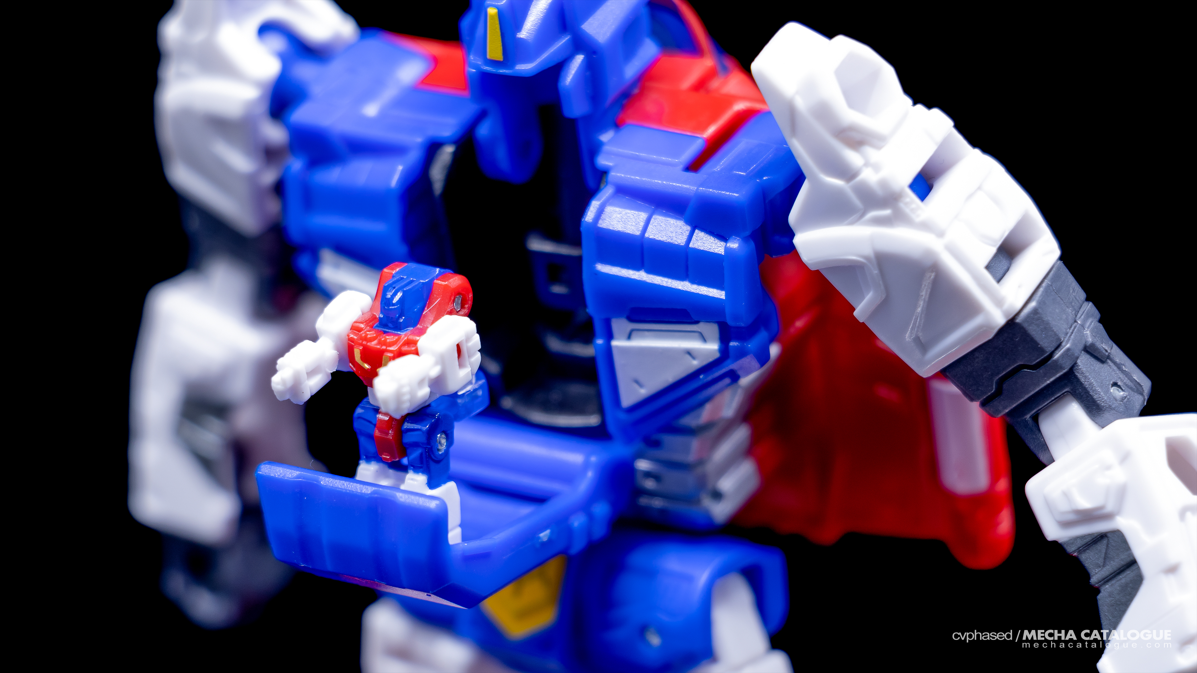 To those unfamiliar, HasLab allows the production of collectibles that might be too niche for a mainstream release but has high potential within a specific audience. HasLab also allows certain figures to be designed without the constraints of existing price points. With Victory Saber, it includes fully featured and combining figures of both Star Saber and Victory Leo. Star Saber itself is further comprised of two components. The first being Saber who comes with an even smaller Brainmaster named “Brain of Courage.”