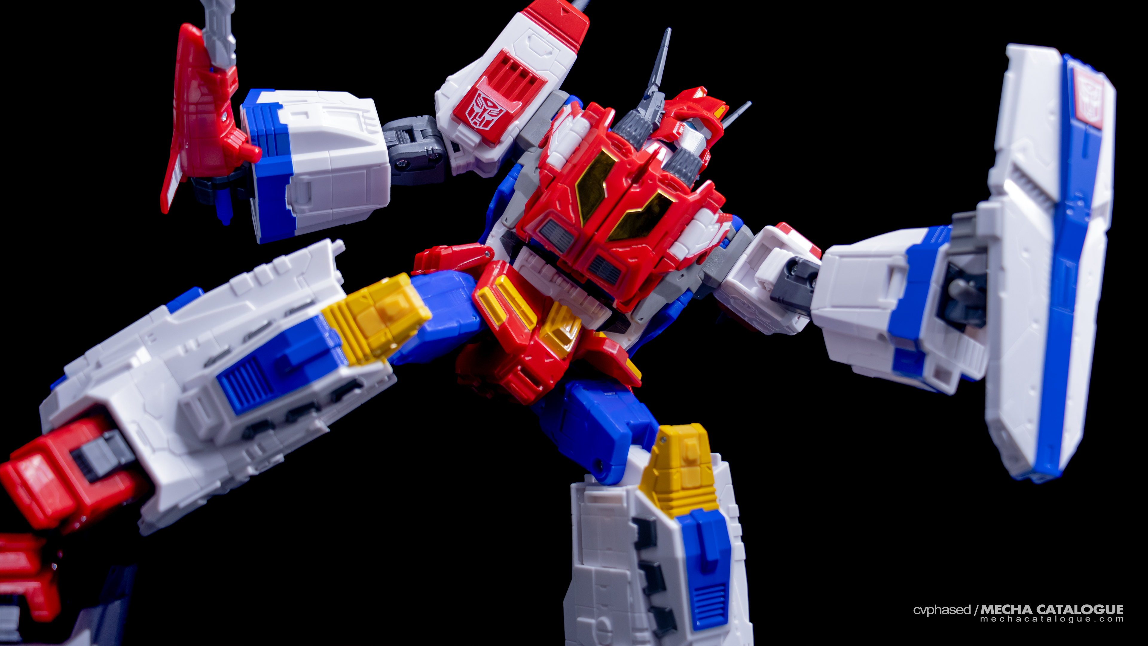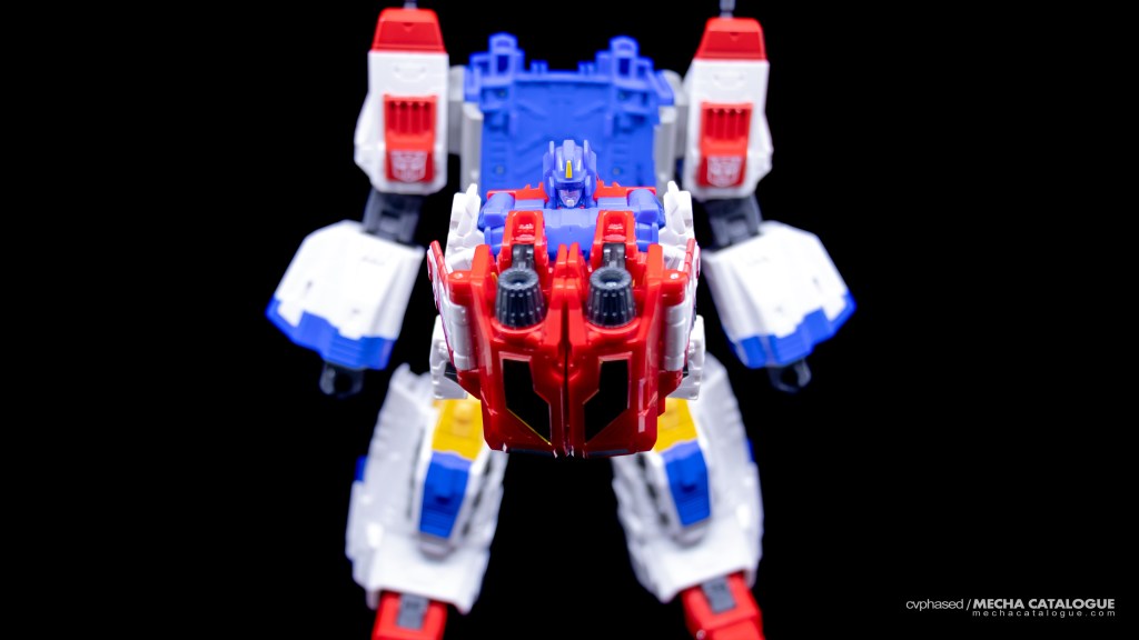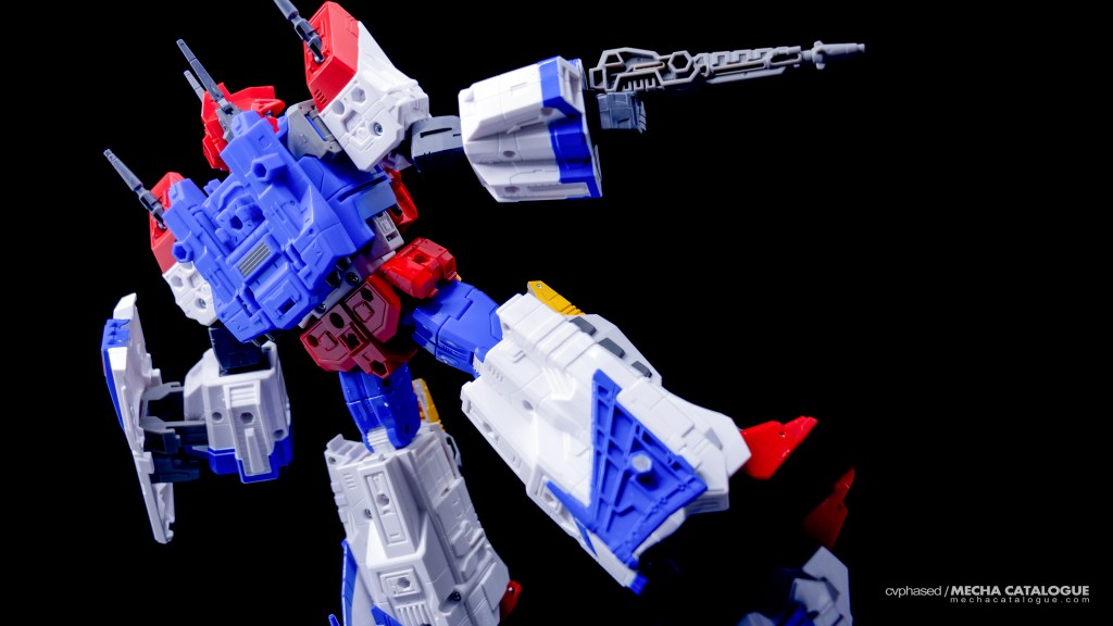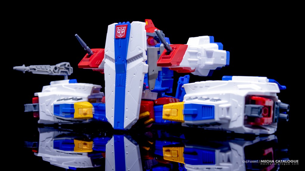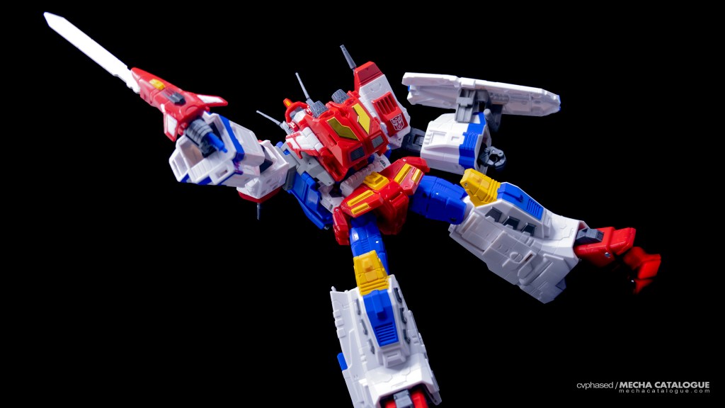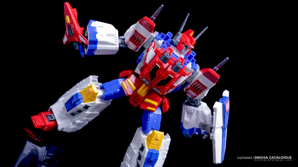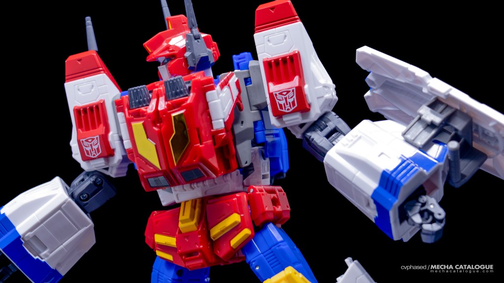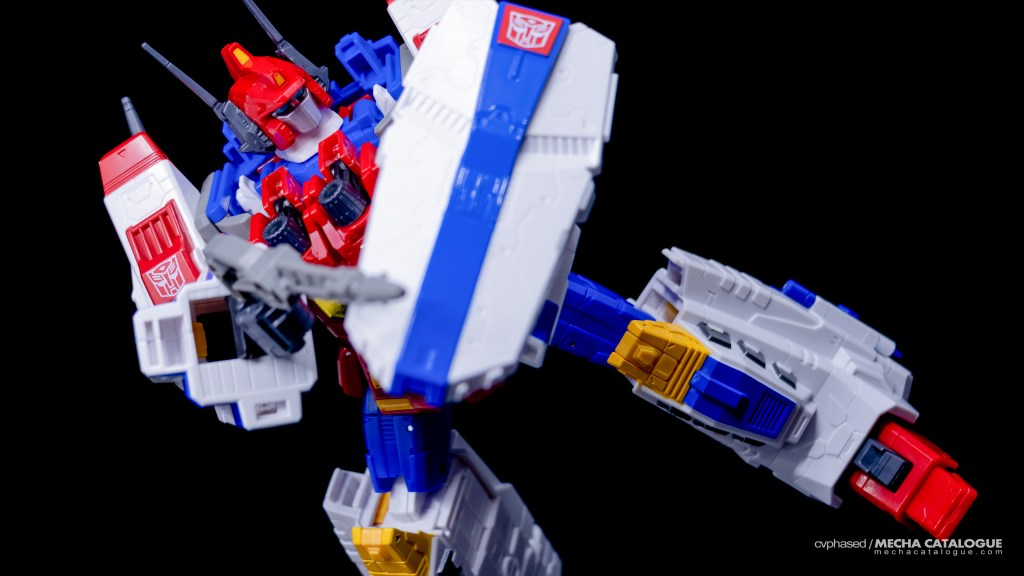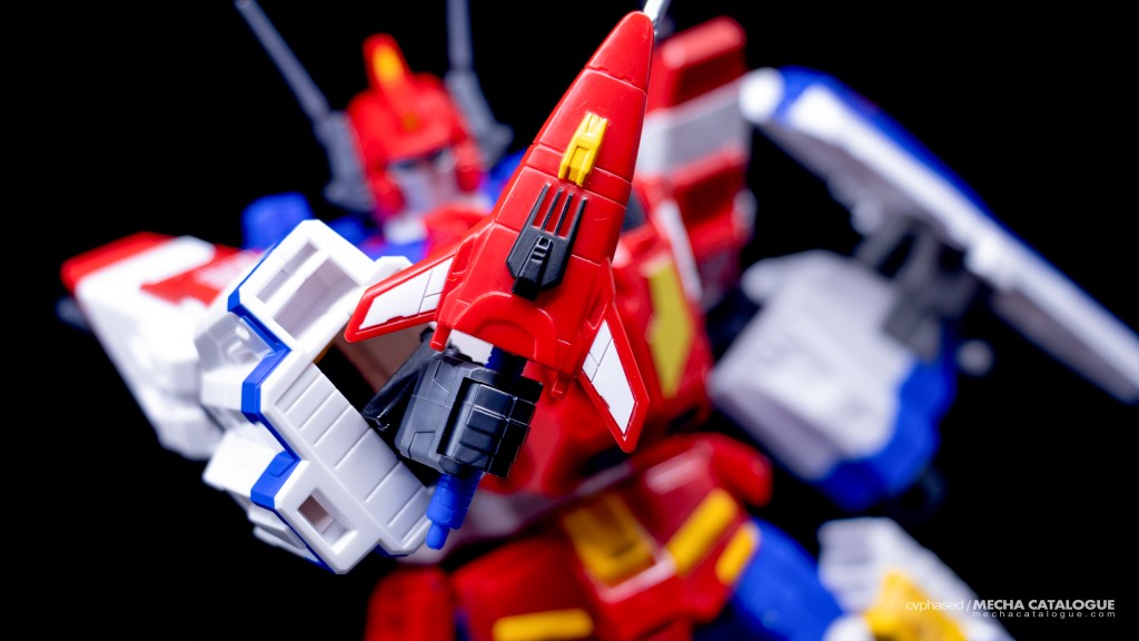 Star Saber’s design is a product of its time, and this rendition is an excellent balance between the features of the original and the expectations from a modern figure. This includes Fire Base Mode which is alright, but the shield connection can be a lot better. V-Star, and Star Saber in vehicle mode looks great despite those obvious screw holes. Fortunately, the sculpted detail helps camouflage them to an extent. It also feels great with the tabs and locks that keep everything in place. Conversion to robot mode is very familiar, and stable thanks to its modern engineering. Though the locking tabs on the legs can get dislodged because of the strong hip and knee ratchet joints. Star Saber is articulated and has all the joints to facilitate them, except some are hindered by its heavier design. Lastly, it can use Saber’s blaster as its main ranged weapon, along with the shield that you can either clip to the forearm or hold via the handle. And of course, there’s the Saber Blade that can finally be held correctly as the blade itself can be attached with either the edge facing front, or with the broad side for those who prefer accuracy to the original.