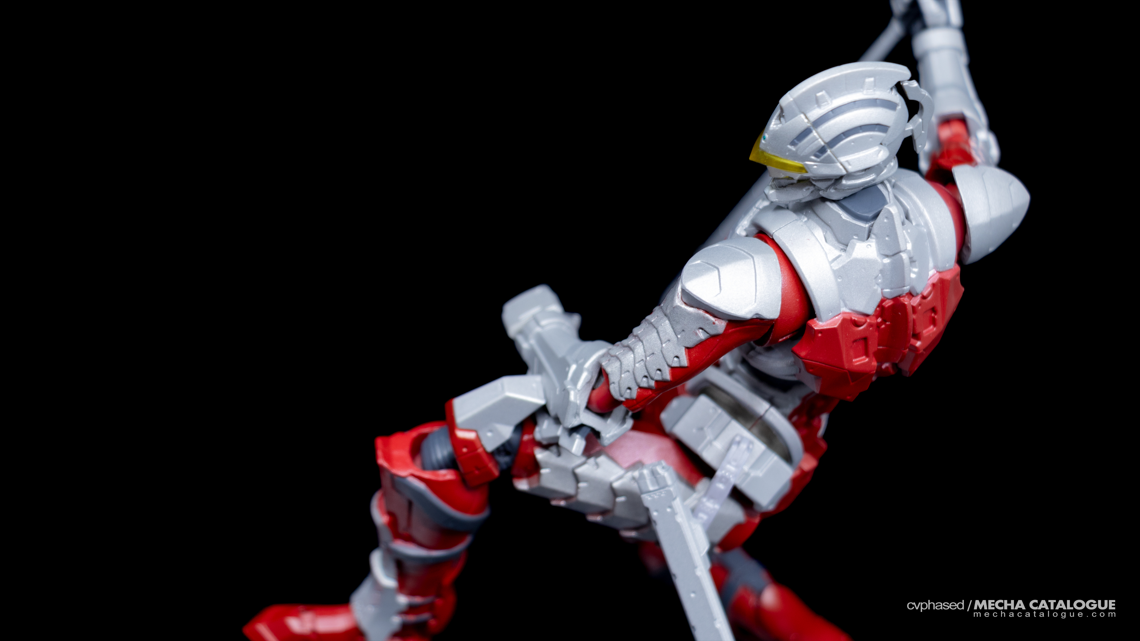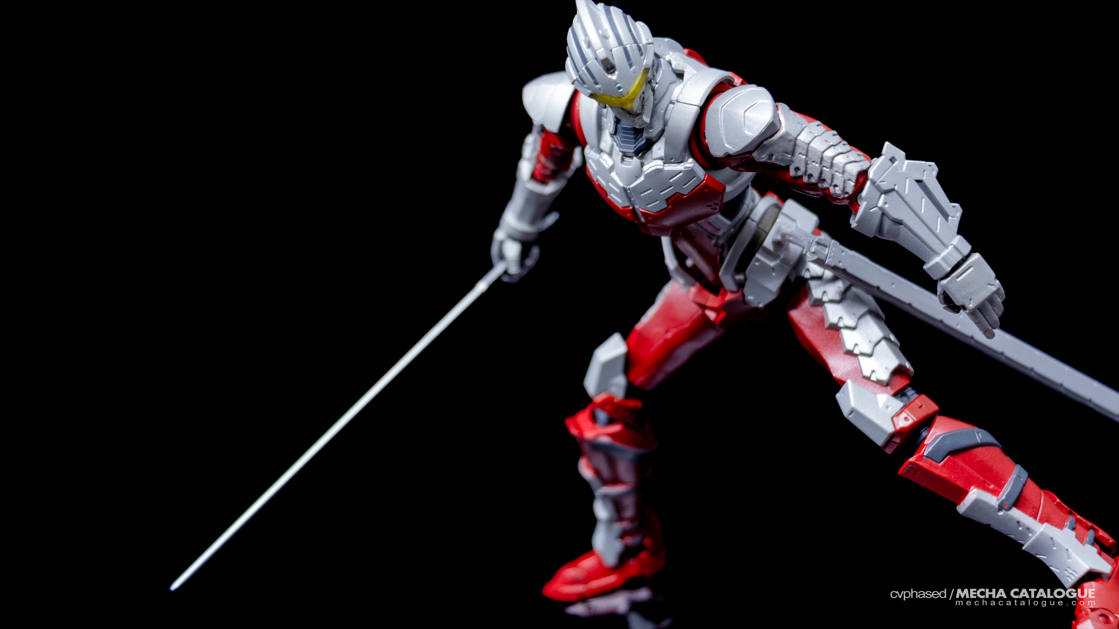 For starters, Tamashii Nations has done an excellent job with the sculpt and detail on this figure, especially on the seemingly layered back panels and the spinal assembly. The same goes with the side panels of the torso where the layered materials are represented with different paint finishes. Speaking of paint finishes, the silver they used isn’t the best but is passable when hit with ample lighting. What’s not passable is their decision to forego the bicep swivels on the upper arms. This is likely to maintain the sculpt of the armor pieces from the shoulders, but this severely limits the arm movement, which is especially important for a sword-wielding character. Just replicating his signature sword-drawing pose became a challenge due to this limitation. Outside of this, the rest of the articulation is standard fare for a Tamashii Nations release. For accessories, outside of replacement pairs of hands, this set comes with the bare minimum of just the Specium Sword and throwing knives, which are shaped after Ultraseven’s Eye Slugger. Oh, and be careful with the piece connecting the sword sheath to the main body, it’s too flimsy.